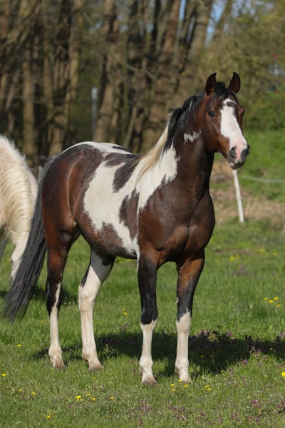 Unsere süsse Curly Sue sucht ab mitte/Ende Oktober ein schönes Zuhause. Curly ist am 04.04.2026 geboren, eine Paint Horse Mix Stute und wird ein Endmass von ca. 1,56m erreichen. Sie ist korrekt gebaut und sieht noch dazu Hammer mässig aus. Schon allein durch ihre Zeichnung und ihr süsser, neugieriger Blick.Wenn man schon in ihre wunderschönen Augen guckt, dann ist man schon total in sie verliebt Ihr Mama Springs Magic May ist eine Paint Horse Stute, ist 1,54m gross, hat einen tollen muskulösen Körperbau. Sie ist sehr cool vom Wesen her und sehr menschenbezogen. Ihr Papa Sherano Moon Flash ist ein 75% Paint Horse(der Rest Pinto), ist 1,57m groß, kräftig und eher der schlankere Typ. Sein Charakter ist ein Traum. Kennt keine Angst, was er auch all seinen Fohlen weiter gibt. Das umgängliche, furchtlose und liebe Wesen. Curly wird vom Typ her mittelkräftig bis kräftig werden. Also sehr stabil. Ich kann sie mir sehr gut in der Western Szene vorstellen. Oder einfach als Freizeitpartnerin. Curly wird bis zum Auszug gechipt sein, bekommt grünen Pass, kennt das Fohlen ABC und wird 2 mal entwurmt. Auf den letzten beiden Fotos ist ihr Papa zu sehen. Sie kann gerne Reserviert werden. Aber nur mit Anzahlung (Kaufvertrag, was schriftlich festgehalten wird). Bei weiterern Fragen einfach anrufen oder schreiben. 0174 2490523 Preis: 4900€ VB Standort: Insel Usedom