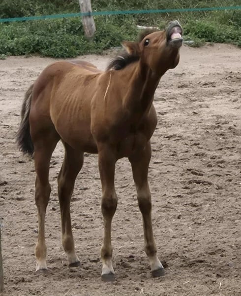 Paint Horse Hengstjährling – vielversprechender Nachwuchs mit tollem Charakter Zum Verkauf steht ein wunderschöner Paint Horse Hengstjährling, geboren am 01.06.2025, in attraktiver Bay-Farbe. Der junge Mann überzeugt nicht nur durch seine ansprechende Optik, sondern vor allem durch sein ausgeglichenes, menschenbezogenes Wesen. Er ist haftführig, kennt den Schmied und zeigt sich dabei stets brav und kooperativ. Im täglichen Umgang ist er sehr zutraulich, neugierig und verspielt. Besonders genießt er Aufmerksamkeit und ausgiebige Krauleinheiten, wodurch er schnell eine enge Bindung zu seinen Menschen aufbaut. Storm wächst artgerecht in der Herde auf und entwickelt sich zu einem freundlichen, neugierigen und aufgeschlossenen Jungpferd mit viel Potenzial – egal ob später im Freizeitbereich, als zuverlässiger Partner oder Turniersport. Mit seinem lieben Charakter, seiner guten Aufzucht und seiner soliden Abstammung bringt er beste Voraussetzungen für eine erfolgreiche Zukunft mit. Er wird nur in gute, fördernde Hände abgegeben, wo er weiterhin liebevoll aufwachsen und gefördert werden kann. Bei ernsthaftem Interesse freuen wir uns über eine Nachricht oder einen Anruf, für weitere Informationen oder um ein Kennenlernen zu vereinbaren. Er kann auch gerne noch zur Aufzucht bei eingestellt werden. Storm wir ein vmtl Stockmaß ca 1,52. Abstammung: Dame: Solid Sorrel Paint Horse Stute SF Docs Chili Sire: gekörter, zweifarbiger Paint Horse Hengst Apachs Smarty Spots