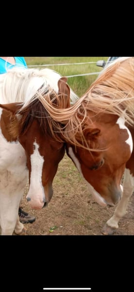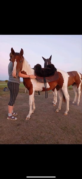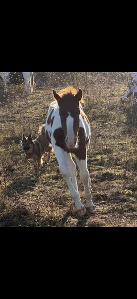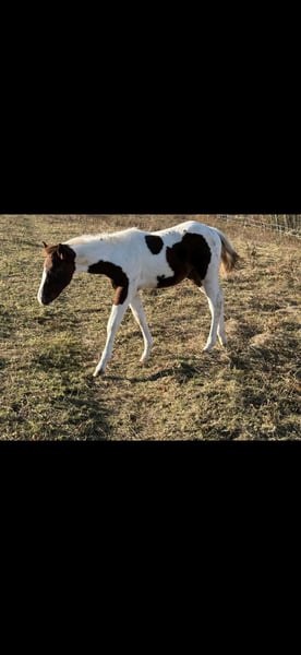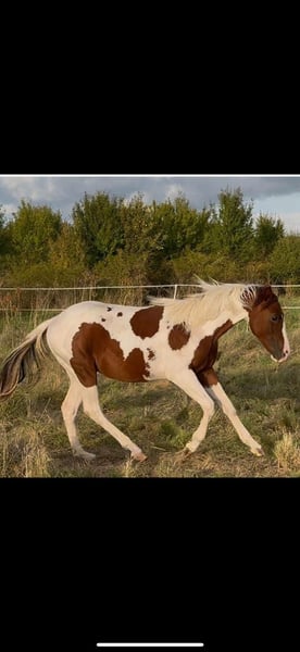 Sehr gelassener zutraulicher Jährlings -Hengst abzugeben. Er wurde am 13.6.24 geboren . Aus eigener Zucht . Farbe Bay . APHA Papier. Die letzten Fotos zeigen ihn als Fohlen . Über seinen Vater *DANCING BOYS OKIE* und Mutter *Kiwas little Cheyenne* ist er tobiano homozygot (vererbt immer seine Scheckung) und 7 - fach Panel negativ . Er hat also Reining - und Allround- sowie Cowhorse - Gene . Er wird sicher ein guter Partner im Freizeit Reiten werden . Er wäre aber auch für den Sport offen . Er kennt Hunde , Katzen und auch Lärm von Landmaschinen und zeigt dabei seinen ruhigen Charakter. Er wächst mit anderen Junghengsten auf und war vorher mit seiner Mutter in einer gemischten kleinen Herde auf großen Koppeln . Er gibt brav die Hufe , Hänger ist kein Problem , kennt bereits Fellsattel und leichte Gewichte , ist natürlich halfterführig, geimpft , entwurmt . Er ist neugierig und offen , bleibt stets gelassen . Er kann natürlich gern besichtigt werden bei ernsthaftem Interesse . Patz vor Preis .