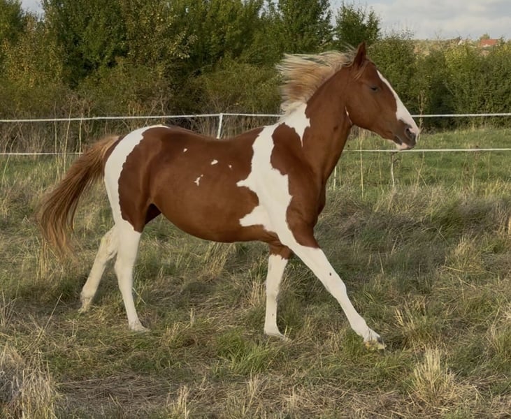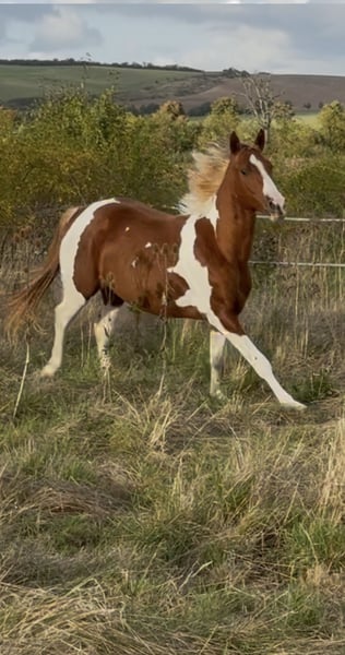 Verkaufe diesen wunderschönen Charakterstarken 2,5 jährigen Hengst, welcher ein förderndes Zuhause für immer sucht. *Docs fast Gun* ist am 27.05.2023 geboren und überzeugt durch sein beeindruckendes Tobiano-Farbmuster in allen Farben, das sofort ins Auge fällt. Er begeistert jeden durch sein freundliches Wesen und ist gegenüber seiner Bezugsperson sehr anhänglich. Er hat zurzeit ein Stockmaß von ca 1,50m und bringt APHA Papiere und den PHCG Pass mit. Docs Fast Gun hat Reining, Allround- sowie Cowhorse - Gene und zeigt viel Potenzial für die weitere Ausbildung und wird sich später wohl gut für Reiter, die ein zuverlässiges und charmantes Pferd für Freizeit oder auch im Westernbereich suchen eignen. Im Cowhorse Bereich zeigt er schon spielerisches Interesse. Seine robuste Konstitution und sein angenehmer Charakter machen ihn je nach Ausbildung zu einem treuen Begleiter für spätere Ausritte und entspannte Stunden im Gelände, Spaziergänge und machen ihn somit zu einem idealen Begleiter für Reiter aller Erfahrungsstufen. Er ist Kerngesund , freundlich im Umgang, sehr gut sozialisiert, kennt das Fohlen ABC, ist geimpft und entwurmt, geht ohne Probleme in den Hänger (auch ohne Trensung) rein, kennt bereits Fellsattel, leichte Gewichte, Hunde, Katzen und Landmaschinen und zeigt dabei seinen ruhigen und ausgeglichenen Charakter. Ebenfalls kennt er Stall und Koppelhaltung. Auf der Koppel stand er immer in einer gemischten Herde und hat sich dort unauffällig gezeigt. Zurzeit steht er mit seinem jüngeren Hengstkumpel (1,5 Jahre) zusammen, mit welchem er sich sehr gut versteht. welcher zur Abgabe ebenfalls bereit steht. Es wäre auch ein Verkauf beider Junghengste sehr gerne zusammen möglich. Beide Hengste zeigen keine Unarten. Die letzten Bilder zeigen ihn als Fohlen mit seiner Mutter Er kann natürlich gern besichtigt werden . Weitere Bilder und Videos könnt Ihr auf Anfrage gerne erhalten.