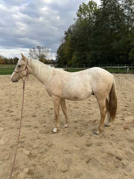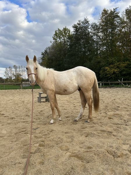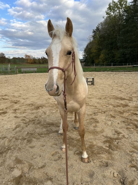 Paint Horse Hengst mit hervorragendem Charakter zu verkaufen! Mutter: Spooks Poco Barbie (QH) Vater: Dunnit Pumuckl (PH) Unser Hengst Snap ist ein echter Hingucker mit Palomino Roan-Lackierung und besitzt Paint Horse Papiere. Er ist 6-Panel n/n getestet und damit genetisch unauffällig. Endstockmas: ca. 150-153 cm Snap überzeugt durch seinen TOP Charakter – freundlich, ausgeglichen und lernwillig. Er beherrscht das Fohlen-ABC und ist von Anfang an regelmäßig geimpft und entwurmt worden. Er kann jederzeit besichtigt werden und freut sich auf einen Menschen mit Pferdeerfahrung, der ihm eine liebevolle und fundierte Ausbildung ermöglicht.