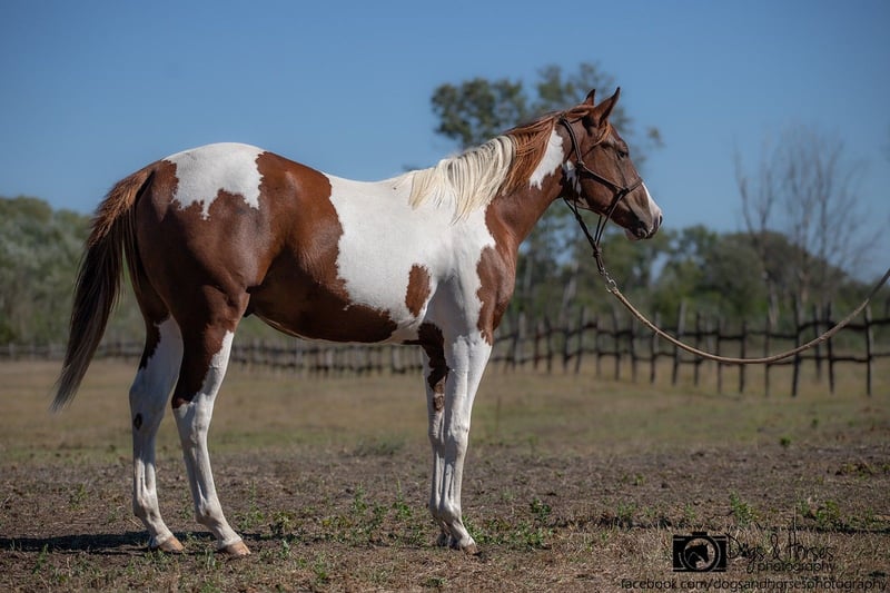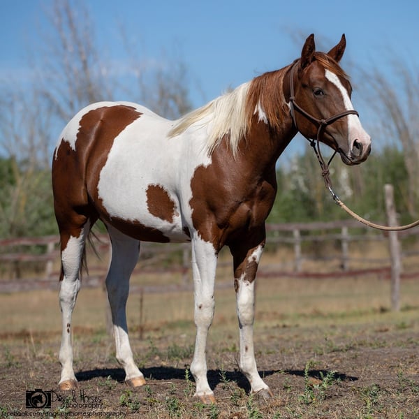 For sale: American Paint Horse stallion, born in 2024, with striking Tobiano coloring. This young stallion impresses with his elegant conformation and promising potential in Western riding. With an estimated final height of approximately 14.3 hh, he is ideal for ambitious riders seeking a versatile and reliable partner. His friendly and outgoing nature makes him a pleasant companion both in handling and training. Thanks to his distinctive coloring and charismatic appearance, he is sure to turn heads at any competition or leisure ride. This young American Paint Horse provides an excellent foundation for a successful career in Western riding or as a breeding prospect. With proper support and training, he promises a bright future and great enjoyment for an engaged rider. The horse is currently located in Hungary / Izsák at El Bronco Ranch.