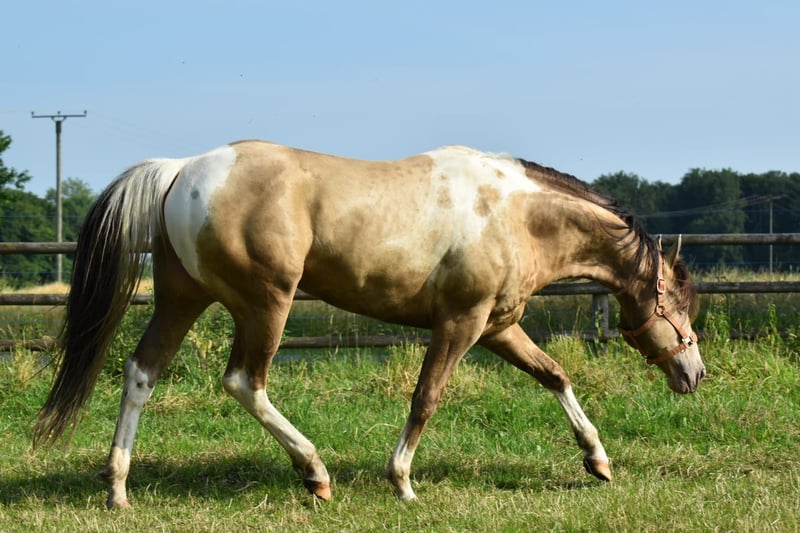 American Paint Horse stallion, classic champagne tobiano