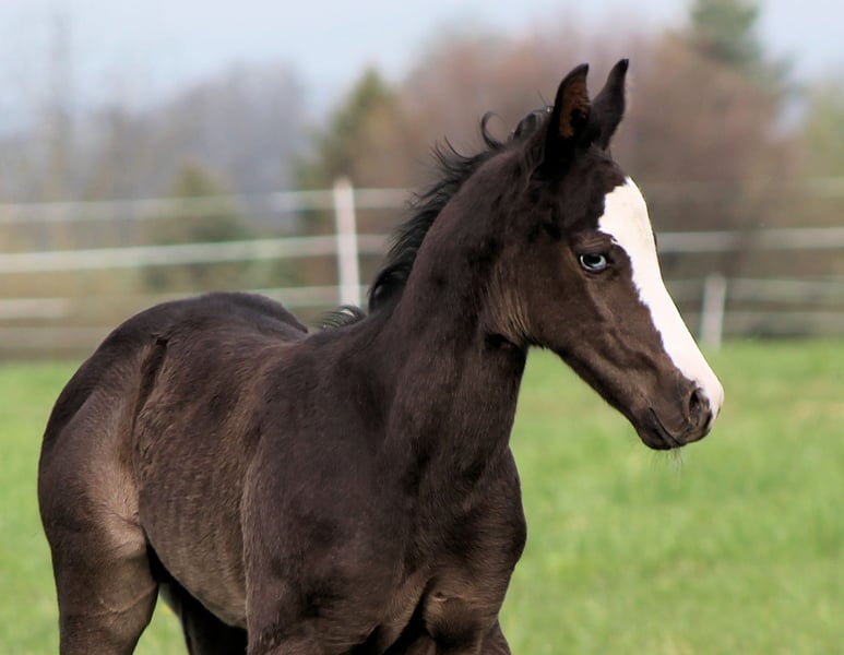 - Kings Smart Reminic - Paint Horse Hengstfohlen 04/2026 black with blue eye in besonderer Optik by Kings Black Vision x SR Reminics O Lena Smarty hat nicht nur ein besonderes Aussehen, auch sein Pedigree kann sich sehen lassen. Charakterlich ein absoluter Schatz, unerschrocken und sehr menschenbezogen. Kann ab Ende September als Absetzer ins neue Zuhause umziehen. Kennt bei Abgabe das Fohlen ABC und hat alles im Gepäck was er brauch. Wird mit APHA Papieren und E-Pass inkl. Zuchtbescheinigung abgegeben. Selbstverständlich wird er bis dato regelmäßig dem Hufschmied vorgestellt, gechipt, mehrfach entwurmt und geimpft. Smarty wächst mit gleichaltrigen Pferden auf großen Weideflächen im Herdenverband auf. Wenn sie Smarty kennenlernen möchten, können Sie sich gerne bei uns melden.
