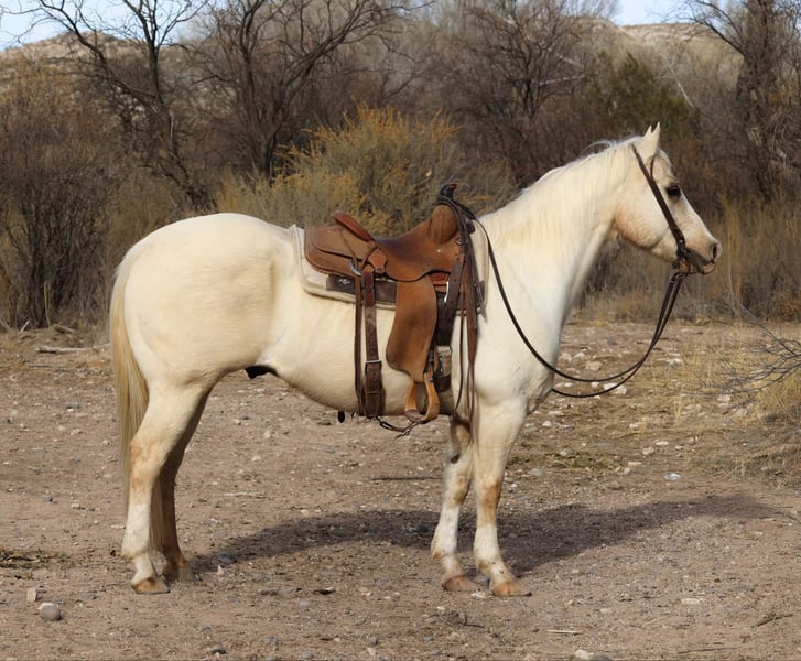 ONLINE AUCTION Place your bids at www.PlatinumEquineAuction.com Starting Bid $3500 Auction ends February 23rd, 2025 Need a new saddle? Check out White Rock Saddles on our website or Facebook! Andy is a grade 9 year old gelding standing 14.2hh. This stout made gelding has been used extensively on Arizona ranches and is an absolute blast to ride no matter your experience level. Andy is safe and gentle in absolutely every way possible! Whether you’re looking for your next mount to go do a long hard days work, cruise on through town, adventure down the trail, or play around in the arena, Andy is your man! Speeding traffic, flowing waters, rocky terrain, thick brush, you name it and Andy will cruise on by without blinking an eye! Not only is this gelding an absolute blast and surefooted as can be outside, he’s just as good in the arena!! Andy will walk, trot, and lope both ways with ease as well as neck rein, back up, and has a good stop! Andy is good to catch, groom, saddle, bridle, bathe, load, and shoe!! Will come with a clean coggins and health! Located in Camp Verde, AZ Contact D/C Equine Services Dallas 804-822-2233 or Natasha 928-460-2625. ONLINE AUCTION Place your bids at www.PlatinumEquineAuction.com Starting Bid $3500 Auction ends February 23rd, 2025 Need a new saddle? Check out White Rock Saddles on our website or Facebook!
