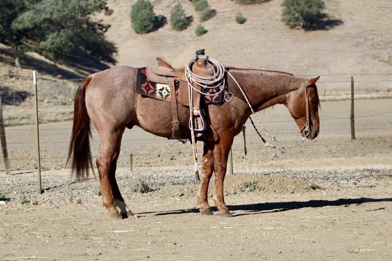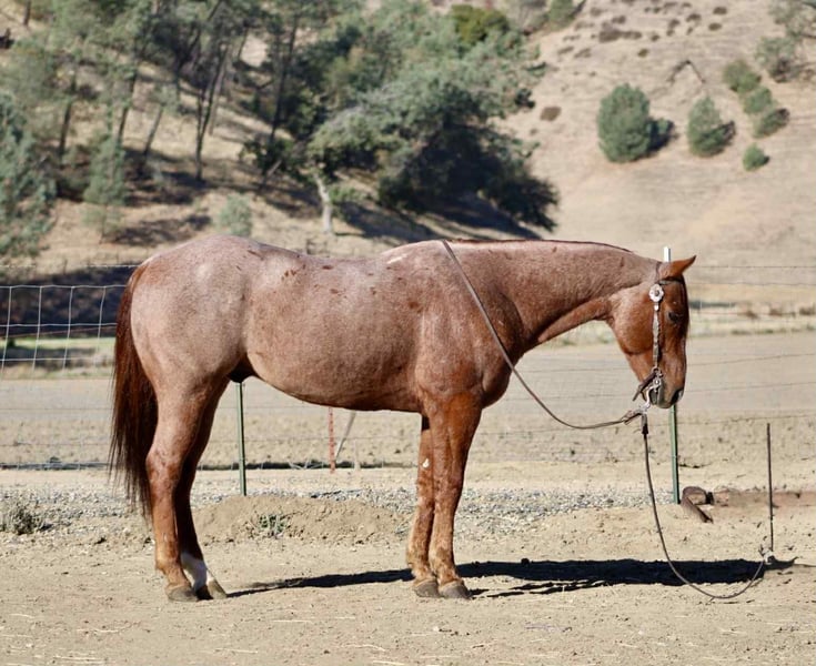 ONLINE AUCTION Place your bids at www.PlatinumEquineAuction.com Starting Bid $3500 Auction ends November 23rd, 2025 Need a new saddle? Check out White Rock Saddles on our website or Facebook Bugatti – Beautiful, Fancy, Fun, and Unflappable Meet Bugatti, the stunning red roan gelding who defines cool confidence. At 10 years old and standing 14.3 hands, this handsome gentleman is the perfect blend of style, steadiness, and class — the kind you can enjoy every single day and still be proud to show off anywhere you go. Bugatti is the real deal: fancy broke, soft in the bridle, and smooth through every transition. He’s got a stylish turnaround, a clean stop, and carries himself with that natural presence that makes every ride look effortless. He’s been roped on, gathered cattle, and handled all kinds of ranch work, taking each task in stride with that calm, collected attitude that’s hard to find. He’s also been hauled on camping trips and ridden across all kinds of country — from the Redwoods to the Sierras — and he takes new places like he’s been there a hundred times. Whether you’re cruising the arena, checking fence, or hitting the mountain trails, he moves with quiet willingness and that touch of class that makes him stand out everywhere he goes. When it comes to the real-world stuff, Bugatti checks every box — flags, tarps, dogs, traffic, strollers, bridges, and water crossings don’t bother him a bit. He’s been around it all and handles everything with that same easy, level-headed attitude. He’s one of the easiest horses you’ll ever meet — honest, forgiving, and steady for any rider. He ties, clips, bathes, loads, and hauls like a pro, and stands polite for the vet and farrier. Whether he’s in a stall or turned out, Bugatti stays the same — quiet, gentle, and ready to please. With that deep red roan coat, good bone, and kind, intelligent eye, Bugatti isn’t just another horse — he’s a statement. Classy enough for the arena, confident enough for the ranch, and kind enough for the whole family. If you’ve been searching for one that’s handsome, dependable, and game for anything, Bugatti is your total package — the kind that makes every ride feel easy. 📍 Located at Longhorn Ranch – Paicines, California 📞 Contact: Dina 831-537-1915 Shipping available nationwide ONLINE AUCTION Place your bids at www.PlatinumEquineAuction.com Starting Bid $3500 Auction ends November 23rd, 2025 Need a new saddle? Check out White Rock Saddles on our website or Facebook