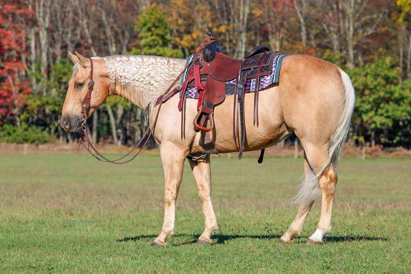 ⚜️𝐓𝐇𝐄 𝐅𝐀𝐋𝐋 𝐇𝐄𝐑𝐈𝐓𝐀𝐆𝐄 𝐂𝐋𝐀𝐒𝐒𝐈𝐂⚜️ Happening now thru MONDAY | NOVEMBER 3rd - Available EXCLUSIVELY on HorseBid's website! For more details and to register visit: www.Horsebid.com CONSIGNOR CONTACT: LT Equine 724-664-5327 LOCATION: Miola, PA BREED: AQHA REGISTERED: Yes REGISTERED NAME: Keg of Bugs COLOR: Palomino HEIGHT: 15 AGE: 9 GENDER: Gelding Introducing Keg of Bugs or as we like to call him Buzz! Buzz is a 15 hand tall beautifully built Palomino Gelding, with a long beautiful mane and tail! Buzz is a registered 9 year old AQHA who’s bloodlines carry back to the famous “Easy Six” and “Bugs Alive in 75”, Buzz is not only colored right, he’s bred right and broke the best! Buzz has been used for everything from ponying race horses on the track, ranched on in Oklahoma to rope cows and push cattle, he’s been used as a pick up horse in the local rodeos and trail ridden through the US. Buzz has a super fancy handle with an easy one finger neck rein, moves smooth and easily off leg pressure, and has a nice 360 turn around. He’s the kind of horse that will make any rider look fancy. And not to mention put a smile on your face because he’s so much fun! Buzz has an easy to que side pass, will open gates with ease. He has a nice relaxed walk and a slow trot with a head set and a nice ranch long trot. He picks up both leads and has great transitions. On the trail Buzz will go out alone or in a group. Does great over rough terrain. Will have a nice ranch walk or if you want a relaxed slow walk he’ll do that too. He’s not a spooky horse and has never offered to buck or bolt or rear. If you’re looking for a horse to take to sorting, ropings, playdays, barrels, poles, or ranch classes all the way to just pleasure trail riding he’s your guy! He’s athletic and loves to work! Buzz has great ground manners as well he stands well tied. Baths, good for farrier and vet. Loads and hauls quietly. Buzz is also microchipped and up to date on Coggins and deworming. Check out Buzz’s video and if you have any questions reach out to me! Thank you and have a wonderful day!