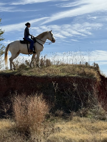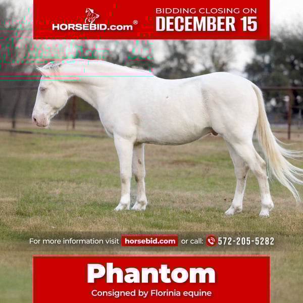 🎄𝐓𝐇𝐄 𝑯𝒐𝒍𝒊𝒅𝒂𝒚 𝐂𝐋𝐀𝐒𝐒𝐈𝐂🎄 Happening now thru MONDAY | DECEMBER 15th - Available EXCLUSIVELY on HorseBid's website! For more details and to register visit: www.Horsebid.com CONSIGNOR CONTACT: Florinia Equine 572-205-5282 LOCATION: Guthrie OK BREED: Aqha REGISTERED: Yes REGISTERED NAME: Fire n Gold COLOR: Cremello HEIGHT: 15.1 AGE: 9 GENDER: Gelding 🦄✨ PHANTOM – 9-Year-Old Cremello Gelding • The Unicorn Everyone Wants but Rarely Finds ✨🦄 If you’ve been waiting for THAT once-in-a-lifetime, heart-of-gold gelding… meet PHANTOM. This 9-year-old cremello gelding is the kind of horse people search years for. His unique golden coat, snow-white mane and tail, and icy blue eyes make him unforgettable—but it’s his mind, manners, and miles that make him a true unicorn. 🧒 Bombproof • Kid Horse Deluxe • Confidence Builder Phantom is as steady and safe as they come. He has been ridden by kids, beginners, guests, and anyone who needs a worry-free mount. He never overreacts, never rushes, never gets hot. He is a true “point-and-go” gentleman who takes care of his rider every single time. 🐎 Steady Eddy • Trail Veteran Phantom has hauled thousands of miles to overnight rides, big group trail outings, and new places. He is calm, level-headed, and sure-footed in every situation. Water, bridges, mud, wildlife, steep terrain—he simply does his job without hesitation. He truly is your Steady Eddy anywhere you take him. 🏇 Versatile – English, Western, or Just for Fun Ride him Western on the trails, throw English tack on him for lessons, pony kids around the yard, or just enjoy him as your all-around family horse. He’s the type that can do anything you ask: ride out alone, follow a group, poke around the arena, or just be the safe, dependable partner everyone wants. 🚙 Hauls Like a Dream Phantom loads and unloads like he’s been doing it his whole life—because he has. He stands tied, handles busy campgrounds with ease, and has been on countless overnight rides. He’s the horse that makes traveling easy. 🦶 Barefoot & Built Right He is barefoot with excellent feet—no shoes required. He stands quietly for the farrier and stays sound and solid on all terrain. 🤝 Perfect Manners – 24/7 Phantom is polite, quiet, and gentlemanly in every moment. Easy to catch, saddle, bridle, groom, bathe, clip—he is the same horse every day, in every situation. 🦄 Horses like Phantom don’t come along often Safe, seasoned, stunning, and unbelievably dependable—Phantom is the kind of gelding families hand down through generations. If you want a horse with the brain, looks, and heart of a unicorn… Phantom is waiting to be your once-in-a-lifetime partner.