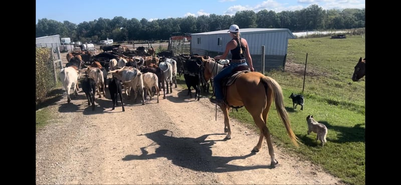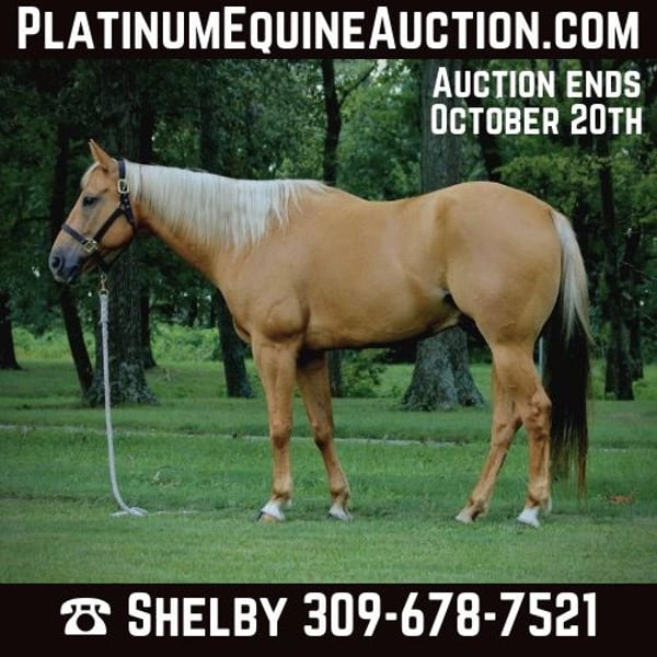 ONLINE AUCTION Place your bids at www.PlatinumEquineAuction.com Starting Bid $3500 Auction ends October 20th, 2024 Need a new saddle? Check out White Rock Saddles on our website or Facebook! JWB Gatok River, or River as we call him, is an absolutely stunning golden palomino, reg AQHA gelding. River came to me as just a scraggly yearling but has grown into the most handsome and dependable partner that I can use for anything. He’s done a little bit of everything under the sun after being stuck with me for 7 years and is my go to horse for many different things. If a friend that doesn’t know much about riding wants to join us on a ride, he’s the guy for the job. Need a trusty mount that’ll take a bump, a pull, or a flag to start colts? He’s the guy for the job. Need to get some cattle up from the pasture and sorted or roped? He’s your guy! Fun show? Ranch class? Flag horse? Trail ride? Ranch rodeo? I could go on and on about all of the things this guy has been there and done but the best way to know if he’s the one for you is to come and see him for yourself! His goofy, but loving and friendly personality is easy to fall in love with. Manners! Did I forget manners?! I expect all of my horses to be gentle enough that my grandma could lead them around without a hitch and River is a prime example. He loads, unloads, ties, trims, stands for the vet, bathes, no issues with any of it. Overnight camping trips and new places have never phased this guy. He’ll stay in portable electric fence or stand on a high line. In the arena you can expect all of the buttons that you could ever want on a horse along with smooth, easy gaits. He has a fantastic little trot AND lope but will also cover some ground and extend out in both gaits. He rides out away from the farm and other horses without a problem. Traffic is also no issue for him. We’ve gone on countless backroads rides and covered many miles, just the two of us. He couldn’t care less if he has another horse going with him, he’s just ready for a new adventure. We’ve even rode into town for ice cream a few times but that was nothing since he has carried a flag in the Tri-State Rodeo parade every year since he was 3. River will pick you up from the fence or a mounting block as well! This guy has been Shelby’s personal horse for the past 7 years so it’s safe to say that she knows him like the back of her hand. River is in his absolute prime at 8 years old and stands 15.2 hands. Creating a great match for both horse and rider is Weaver’s Quarter Horses number one priority! We are located in Shobonier, IL. Please call Weaver Quarter Horses Shelby 309-678-7521 to discuss River further and schedule a time to meet this trusty steed. ONLINE AUCTION Place your bids at www.PlatinumEquineAuction.com Starting Bid $3500 Auction ends October 20th, 2024 Need a new saddle? Check out White Rock Saddles on our website or Facebook!