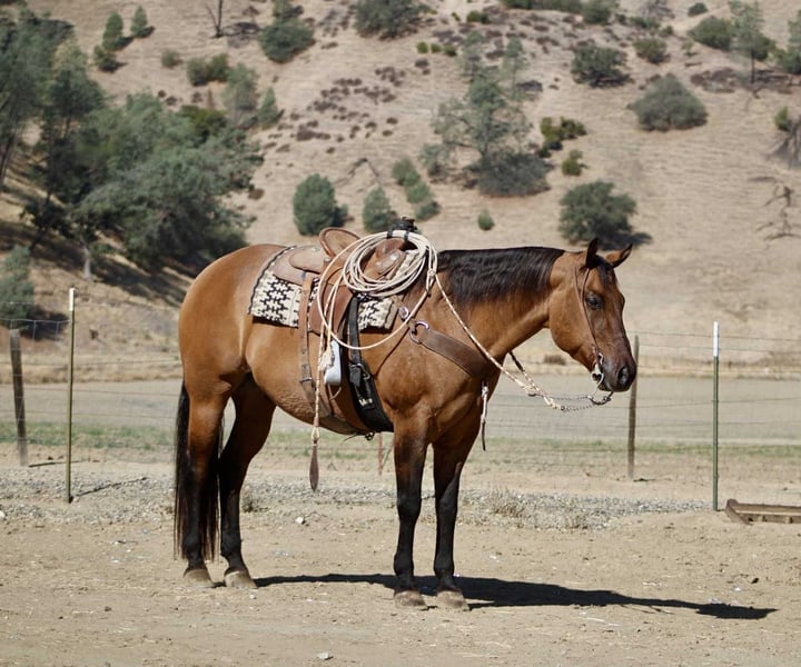 ONLINE AUCTION Place your bids at www.PlatinumEquineAuction.com Starting Bid $3500 Auction ends October 26th, 2025 Need a new saddle? Check out White Rock Saddles on our website or Facebook KGS Latigo Dun Skip – Where Style Meets Substance If you like them big, broke, and downright beautiful, here’s the one that turns heads everywhere he goes. KGS Latigo Dun Skip is a 2015 AQHA buckskin/dun gelding standing a true 16 hands, and he’s every bit as impressive in person as he looks on paper. This is that rare, picture-perfect, puppy-dog-gentle gelding that rides like a pro yet stays quiet and kind enough for absolutely anyone. Latigo is exceptionally broke — he’ll side-pass over poles, back through an L, spin, pivot, stop, and change leads so smooth it looks rehearsed. He’s earned AQHA points in Ranch Trail and Ranch Versatility, and his handle is everything you’d hope for: soft, responsive, and stylish. If you’re after the easy-going kind with buttons to show off, this is your boy. He’s the definition of seasoned. Latigo has been branded off of, gathered cattle, and put in real ranch work with the same calm, can-do attitude he brings to the show pen. Out on the trail he’s absolutely solid — he’s gone up narrow mountain passes, through brush, logs, creeks, bridges, and steep country, and across every obstacle imaginable: flags, tarps, bouncy balls, tires, and flying plastic — and never so much as flicks an ear. Traffic, dogs, wildlife — nothing fazes him. He’s easy in every way. Stands quiet for the farrier and vet, tacks up easy, hauls anywhere, and genuinely loves people. Ride him every day or once a month — he’ll saddle up the same. Latigo is that rare, steady-minded, kind-hearted gelding that makes you feel safe, look good, and have fun all at once. His pedigree backs it all up: by Dun It OK (son of Definitely A Dunit by the legendary Hollywood Dun It) and out of Skip The Silk, tracing to Genuine Bee Skip and Tuff Tazz. He’s AQHA DNA-verified and 5-panel N/N, combining reining style, cow sense, and rock-solid foundation breeding into one flawless package. From branding pens to show pens, trails to traffic, Latigo does it all — and looks good doing it. Handsome, handy, and honest through and through. Safe for the whole family to enjoy!!! Located in Paicines, California. Contact Dina with Longhorn Ranch 831-537-1915. ONLINE AUCTION Place your bids at www.PlatinumEquineAuction.com Starting Bid $3500 Auction ends October 26th, 2025 Need a new saddle? Check out White Rock Saddles on our website or Facebook