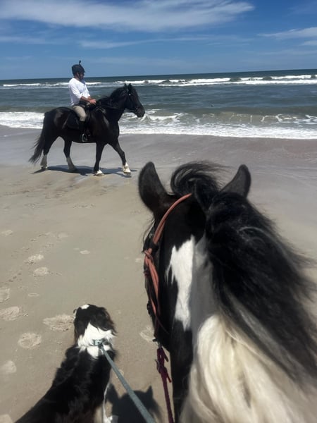 ONLINE AUCTION PLACE YOUR BIDS AT PLATINUMEQUINEAUCTION DOT COM $3500 STARTING BID AUCTION ENDS JUNE 30TH Introducing Moonshine! A stunning 9yr 16.3h Shire x QH cross gelding with a one-in-a-million brain! Calm, sweet, and comfortable push ride. Moonshine has years of experience fox hunting and doing guided beach trail rides with beginner riders. He is accustomed to riding around traffic, bicycles, dogs, and water. Moonshine loves schooling cross country and going to hunter paces to jump all the things…ditches, banks, coops, logs, rock walls, etc. He has a smooth, flat jump that is easy for riders starting over fences. Moonshine is easy to load, haul, tie, bathe, trim, etc. He has a scar on his neck from being bit by a stallion as a baby. It has been evaluated by the vet and does not bother him. Moonshine is a barefoot easy keeper with no vices or maintenance. He turns out in a mixed herd and keeps a clean stall. He is up-to-date on shots, Coggins, floating, deworming, sheath cleaning, and hoof trimming. If you’re looking for a large all-around draft cross to trail ride, jump, or fox hunt, don’t miss out on this awesome horse! Moonshine is located in Ocala, Florida and shipping can be arranged anywhere in the country. Please call Rachel with Show Me Sport Horses at 352-467-5695 with any questions. Located in Ocala, FL.