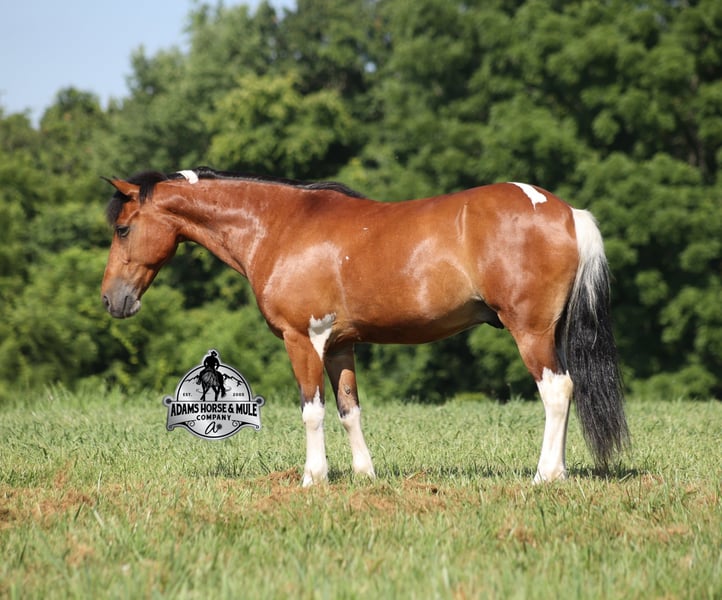 Snickers is consigned to the Best Of The West Horse Sale in Gladstone, NJ on September 26-27th. You can bid online or bid in person. There is a preview day before the sale or you can come ride him prior to the sale in Mt. Vernon, KY. Snickers is a 12.2h, stout built, 9 year old, paint quarter pony and he is sure you be your favorite little boy’s or little girl’s dream come to life! Snickers has been our little girl’s(Lynnlee) whole world for the last two years and now it’s time to move him along to another family and let him do his job of teaching some other kids how to ride while sitting them on the path of many years of success in the saddle. At 9 years old and 12.2hh he is the perfect age to have the experience and the perfect size to carry any size kid. Snickers is responsible for millions of smiles, thousands of giggles, and countless miles and hours of fun with our little girl… all while doing it flawlessly, completely safe and as close to perfection as a horse can get. Even early on before Snickers gave Lynnlee the confidence that she has now, Snickers would tolerate her mistakes with the reins, he would never take advantage of her and was very patient. Confidence comes easy with Snickers as he is one hand broke, he neckreins around and goes anywhere that you point him, he walks quietly but moves out when asked. He has a smooth trot, he lopes nice circles, always takes the correct leads and just floats along slow and easy while on a complete loose rein. Snickers can go English or Western. He has been over the rails and does it with ease. Snickers has been ridden through town, is traffic safe, around cows and down the trails. He is a trail riding machine and will take the little riders safely anywhere that the adults can go… creeks, ditches, crosses logs, picks his way through deadfall or rocky paths… he is very sure footed and is not in a hurry! Snickers will ride out alone, leave the barn behind with no issues, will ride in the front of a group or way back behind everyone without a fuss. Snickers is the same horse whether ridden daily or if he is left in the pasture for a few months during the winter. Snickers is very friendly and loves to be groomed, whether that is standing patiently for an hour so Lynnlee can braid every hair that he has or getting soaked with a hose and scrubbed with a half of a bottle of shampoo… Snickers is the perfect kid’s horse, with his patients, confidence, rideability… do your little one a favor and make sure that Snickers next home is with them! For more info call 606-308-2461.