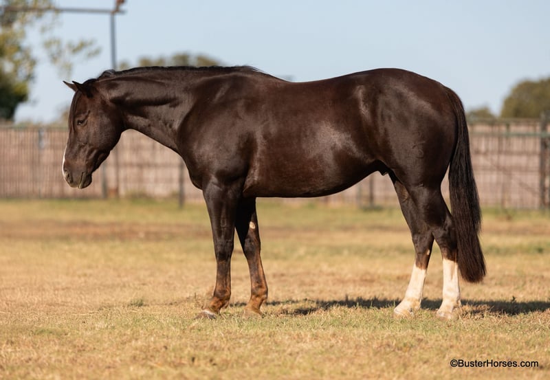 ONLINE AUCTION Place your bids at www.PlatinumEquineAuction.com Starting Bid $3500 Auction ends November 17th, 2024 Need a new saddle? Check out White Rock Saddles on our website or Facebook! “Beans” – 14.2H, 9 year old chestnut quarter horse gelding. We get calls every week, for “just-a-horse”, you know, just to trail ride, just to live at the house, just for guests, just for a once a year event or group trail ride. Well, if you have been hunting that “just-a-horse”, this is your guy. Beans is nothing fancy at all – just a horse – but a good one and he’s sure pretty too! He is sweet natured, friendly, and docile – he would love to be someone’s pet and just hang out. His good looks sure don’t hurt him! He has a unique, fancy dark chestnut/brown color, and just enough chrome to stand out, but still looks classic. He has huge bone and is stout as they make one – the rider in this video is over 6′ and ALL LEG – he should be able to carry just about any sized rider, but he is still a nice comfy easy to saddle and easy to get on and off of size! He has been on a ranch most of his life and has been used to check lots of cattle and fence lines. He has been roped off of a little too, but he’s not very fast. He rides on a big loose draping rein and he is always eager to stop on whoa, has a super comfy little shuffle jog to him, and a nice lope. He is pleasant to ride out, and enjoys going places and pays attention where he puts his feet. He rides like he’s been out a time or two before! Just a good ol’ boy that is no nonsense, chill, and happy to be here. He loves getting in the water and falls asleep for a bath! He lives out in a big pen with several others and is a very easy keeper, he’s on a light ration and still looks like a million bucks! He has front shoes on and was just shod last week, and had his teeth done by an equine dentist last month. Watch his video and to see additional videos, go to our website: BusterHorses.com or our Facebook page Buster Horses Please call anytime for more information at 214-605-7174 Beans is located in Weatherford, TX – one hour from Dallas / Fort Worth International Airport. He is an easy day trip or fun overnight trip to come try out, from anywhere! We are experienced, knowledgeable sellers, and we can help with quickly arranging affordable shipping to any buyer’s location – we have experience shipping worldwide – including regularly to Hawaii, Canada, Mexico, Europe, and South Africa. ONLINE AUCTION Place your bids at www.PlatinumEquineAuction.com Starting Bid $3500 Auction ends November 17th, 2024 Need a new saddle? Check out White Rock Saddles on our website or Facebook!