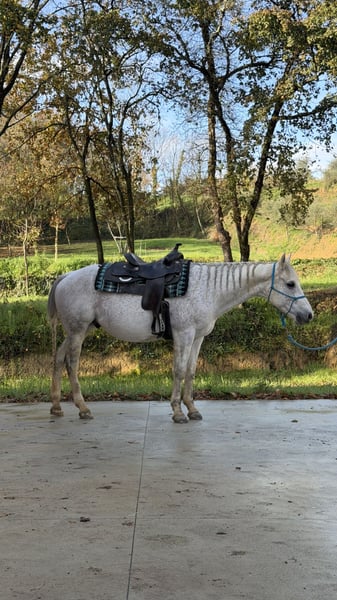 Gelding Quarter Horse 🩶SH in Peseta Liberty🩶 - Quarter Horse gelding, 10 years old - Registered with AQHA - Reining training with excellent competition results - Also ideal for trail riding or lessons, suitable for any environment and situation, he’s fearless 💥 - Very suitable for beginners - Ridden bareback or halter-style without issues - Used to stables and paddocks (alone or with other horses) - Truly bombproof horse 💣 - Up to date with vaccinations, deworming, and Coggins test negative 💉 - Feet are healthy; currently fitted with reining shoes on the hindquarters - Located in Italy 📍 - 11🥕🥕🥕 (including equipment)