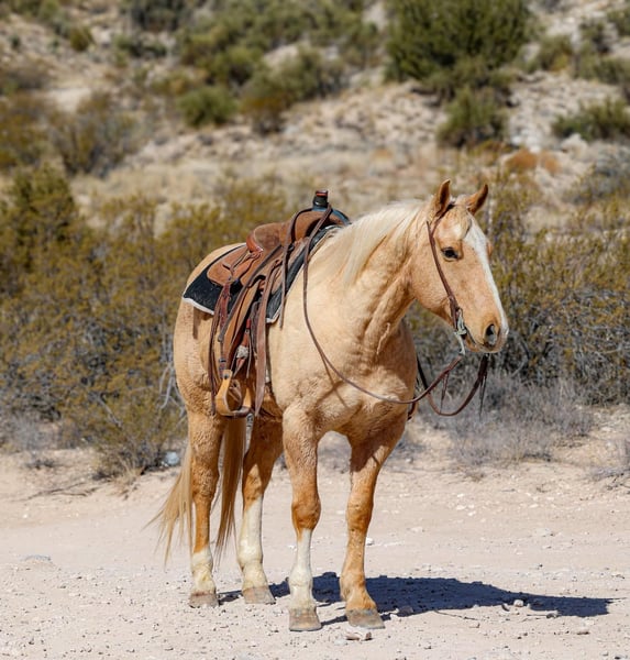 ONLINE AUCTION Place your bids at www.PlatinumEquineAuction.com Starting Bid $3500 Auction ends March 16th, 2025 Need a new saddle? Check out White Rock Saddles on our website or Facebook! Banana is a 10 year old grade gelding standing 14.3hh. Banana is a been there done that gelding and has done absolutely every single job around the ranch. From doctoring yearlings to dragging calves and even packing fencing material and salt. Banana has been used all over the rough country of Arizona and New Mexico and is no stranger to rocky country and a long days work, making him absolutely broke with lots of exposure under his belt. This gorgeous gelding will go absolutely anywhere you point him. Steep rocky terrain, flowing waters, fallen logs, thick brush, the busy streets of town. You point him towards and he’ll trek on through it. This gelding is not only an absolute blast to ride outside, but an absolute gentleman in the arena with a fancy handle!! Banana will walk trot and lope both ways with ease, as well as sidepass, neck rein and has a good stop! Whether you’re looking for a dense boned, surefooted gelding to go do a long days work, a quiet gentleman to ease on down the trail, or a fancy mover to play around in the arena Banana will be your guy!!! Banana is easy to catch and good to groom, saddle, bridle, bathe, shoe and load! Will come with a clean coggins and health! Transport can easily be arranged anywhere in the US!!! Located in Camp Verde, AZ Contact D/C Equine Services Dallas 804-822-2233 Natasha 928-460-2625. ONLINE AUCTION Place your bids at www.PlatinumEquineAuction.com Starting Bid $3500 Auction ends March 16th, 2025 Need a new saddle? Check out White Rock Saddles on our website or Facebook!
