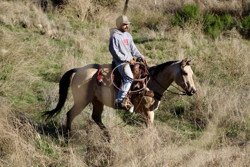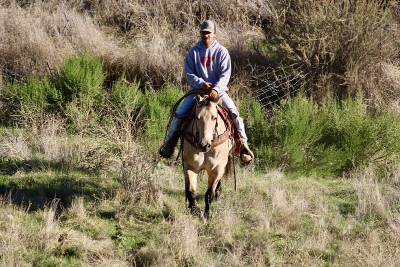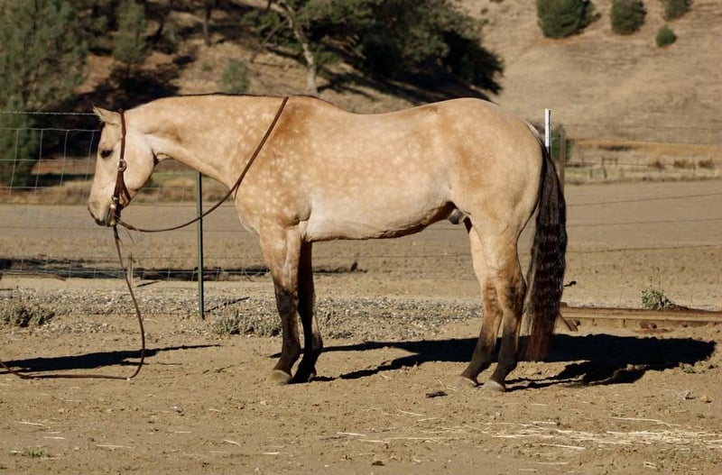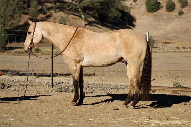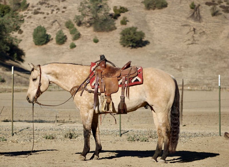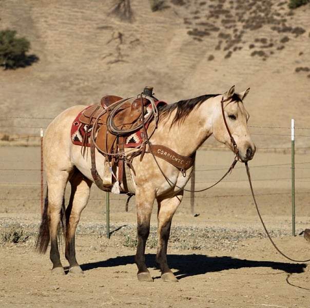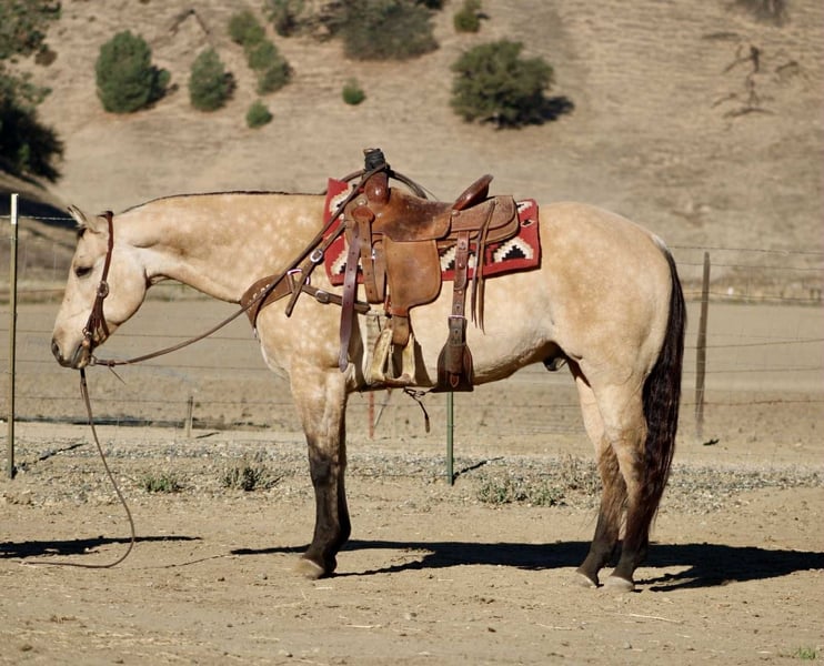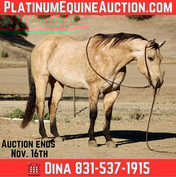 ONLINE AUCTION Place your bids at www.PlatinumEquineAuction.com Starting Bid $3500 Auction ends November 16th, 2025 Need a new saddle? Check out White Rock Saddles on our website or Facebook Amaretto – The Dapple Buckskin Gentleman with a Willing Heart Beautiful, well-made, and all class — this dapple buckskin gentleman has the looks, shape, and attitude that’ll make you tip your hat every time you walk past him. Amaretto is a 10-year-old, 15-hand gelding that’s spent most of his life as a trail and ranch horse. He’s covered miles of country, gathered cattle, and checked fences across all kinds of terrain. He’ll go through brush, cross creeks, climb hills, and handle traffic or ranch commotion without a care in the world. He’s surefooted, steady, and the kind of horse you can count on to get you there and back in one piece. Since coming to Longhorn Ranch, we’ve been riding him in the arena and introducing him to flags, obstacles, and new situations — and he’s doing great with all of it. He takes everything you show him with that “no big deal” attitude, always willing to try and eager to please. He’s learning quick, staying soft and relaxed, and proving that he’s not just a good trail horse — he’s a versatile one, too. He picks up both leads, moves off your leg, and stays light in the bridle. He’s smooth, balanced, and easy to get along with — the kind that makes every ride feel simple and enjoyable. He’s not the showy or complicated type; he’s the kind that makes you appreciate the good ones that just get along and go anywhere. Amaretto is good to shoe, haul, bathe, and tie, and he’s the kind that meets you at the gate with a soft eye and a kind heart. He’s pleasant in the barn, easy in a group, and steady out on his own. If you’re looking for one that’s easy on the eyes, comfortable to ride, and good-minded through and through, this buckskin fits the bill. He’s got that steady foundation, a lot of life ahead of him, and a personality that makes him a favorite wherever he goes. Whether you’re cruising the trails, checking cattle, or just want a solid partner to enjoy every day — Amaretto’s the one for You . 📍 Located at Longhorn Ranch – Paicines, California 📞 Contact Dina: 831-537-1915 🚚 Nationwide shipping available ONLINE AUCTION Place your bids at www.PlatinumEquineAuction.com Starting Bid $3500 Auction ends November 16th, 2025 Need a new saddle? Check out White Rock Saddles on our website or Facebook