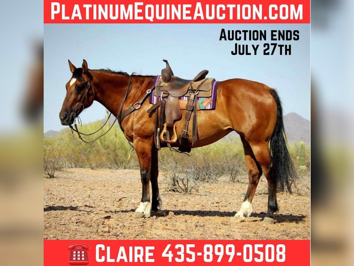 ONLINE AUCTION Place your bids at www.PlatinumEquineAuction.com Starting Bid $3500 Auction ends July 27th 2025 Need a new saddle? Check out White Rock Saddles on our website or Facebook Need a reliable, safe and sound ranch or trail partner? Denim is your girl! This gorgeous dun mare is 10 years old and stands a stout 15 hands tall. Denim has been used out on the ranch and is no stranger to a full day of work. This mare has a lot of heart and loves to have a job! She has sorted, gathered, been used at a few brandings, open and closes gates and has a lovely ground covering walk to get you from one place to the other. Denim is super gentle, has a nice neck rein, turn around and back up. She’s also a great trail horse since she’s seen a lot of outside miles! She is not spooky at all and will cross anything you ask her to. She is one of those mares that gives you her all every day. To top it off, this mare is an absolute love bug on the ground. She loves attention and treats and will stand tied all day for bathing and grooming. She is good for the farrier and is currently shod on all four. Denim hops right in the trailer ready to go on adventures or go to work and hauls nicely alone or with others. She has been handled by kids on the ground and is very respectful of their space, a handy kid would get along with her great riding as well. Denim is sound with no maintenance needs and is an easy keeper! If you love a mare with a big heart that wants to move mountains for you, check out Denim! She will come with a fresh coggins and health certificate. Happy to help arrange transport anywhere! Feel free to call or text Claire Siebols 435-899-0508 with any questions. Located in Marana, AZ. ONLINE AUCTION Place your bids at www.PlatinumEquineAuction.com Starting Bid $3500 Auction ends July 27th 2025 Need a new saddle? Check out White Rock Saddles on our website or Facebook