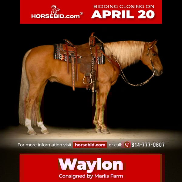 ⚜️𝐭𝐡𝐞 𝓔𝓵𝓲𝓽𝓮 𝐒𝐩𝐫𝐢𝐧𝐠 𝐂𝐥𝐚𝐬𝐬𝐢𝐜⚜️ Happening now thru MONDAY | APRIL 20th - Available EXCLUSIVELY on HorseBid's website! For more details and to register visit: www.Horsebid.com CONSIGNOR CONTACT: Marlis Farm 814-777-0607 LOCATION: Rebersburg, PA BREED: Quarter horse REGISTERED: No REGISTERED NAME: Waylon COLOR: Palomino HEIGHT: 15 AGE: 11 GENDER: Gelding ✨ Waylon – 11 Year Old Palomino Quarter Horse Gelding ✨ Waylon is an exceptional 11-year-old, 15 hand palomino Quarter Horse gelding that checks all the boxes for a dependable, versatile partner. This handsome gelding is well broke to ride, neck reins, and is very handy broke, making him suitable for a wide range of riders. Waylon has been successfully shown in 4-H and has also been hauled to rodeo events, giving him the kind of real-world experience that makes him solid and reliable. He is a great trail horse, rides out quietly, and is traffic safe, handling new environments with confidence and ease. Not only is Waylon talented and experienced, but he is also gentle, sound, and eye-catching with his beautiful palomino color. He is the kind of gelding that can go from the arena to the trails and fit right in! 📞 For more information or to come meet Waylon, call Mark 814-777-0607 (call only). 🚚 We can help arrange shipping anywhere.