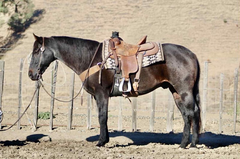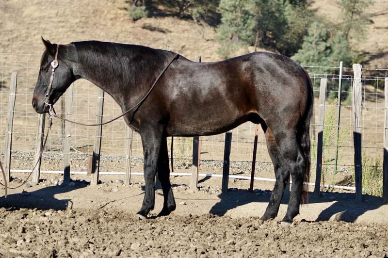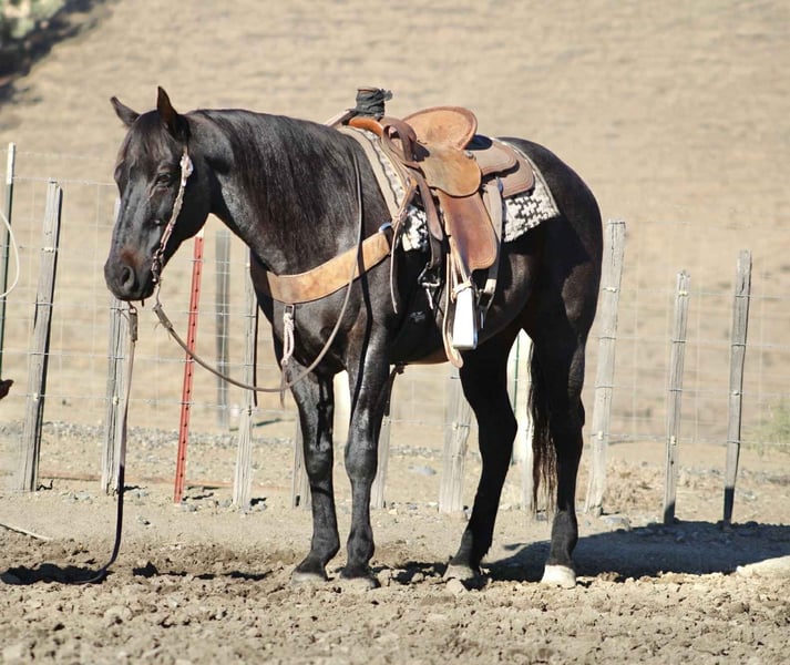 ONLINE AUCTION Place your bids at www.PlatinumEquineAuction.com Starting Bid $3500 Auction ends November 2nd, 2025 Need a new saddle? Check out White Rock Saddles on our website or Facebook Blue Topaz – Steady, Seasoned, Ranch and Trail Ready… Meet Blue Topaz, the 11-year-old, 15-hand blue roan gelding who proves that calm doesn’t mean boring. He’s the kind that shows up every day with a good attitude, a willing heart, and just enough style to make you notice him. Topaz has done his share of honest ranch work — he’s branded calves, sorted pairs, and checked fence from daylight to dark. He’s the dependable type that doesn’t need convincing: point him at the job and he just clocks in. No drama, no nonsense, no “let’s talk about it” moments — just goes along with it. In the arena, he’s smoother than your morning coffee. Travels low-headed and easy, rolls through a turnaround like it’s second nature, and stops soft and straight without the rodeo theatrics. You can ride him fancy, or ride him relaxed — either way, he’ll make you feel like a hand. Out on the trail, he’s unshakable. Crosses water, logs, bridges, and traffic like it’s his daily commute. Flags, dogs, kids on bicycles — he’s seen it, shrugged, and kept walking. He’s kind to shoe, haul, clip, and catch, and he’s got that laid-back, best-buddy personality that makes him easy to love. If you want a gelding that’s as trustworthy as they come — with a little humor and a whole lot of heart — Blue Topaz is the one. Located in Paicines, CA. Nationwide shipping available! Call or text Dina with Longhorn Ranch 831-537-1915. ONLINE AUCTION Place your bids at www.PlatinumEquineAuction.com Starting Bid $3500 Auction ends November 2nd, 2025 Need a new saddle? Check out White Rock Saddles on our website or Facebook