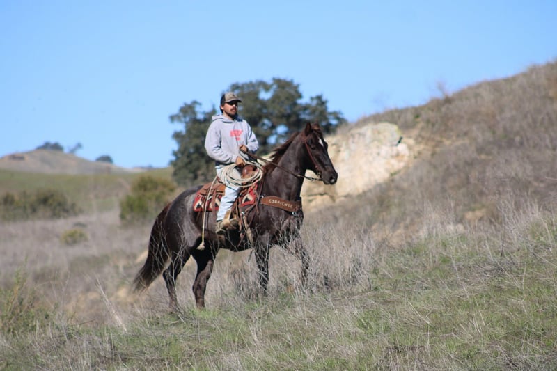 ONLINE AUCTION Place your bids at www.PlatinumEquineAuction.com Starting Bid $3500 Auction ends December 14th, 2025 Need a new saddle? Check out White Rock Saddles on our website or Facebook ANVIL — The Definition of a Ranch Horse Chestnut Roan • 15.1 Hands • 11-Year-Old Gelding Big • Broke • Feedlot Proven • Dependable All Day Long If you’re after a true using gelding with size, bone, and a steady, mature mind, Anvil is the one that stands out. This stout, uniquely marked chestnut roan gelding has spent his life doing honest work and doing it right. No drama, no hesitation, and no wasted motion — just , dependable, consistent effort day after day. Anvil is feedlot seasoned and knows the rhythm of real work. He handles cattle calmly and correctly, easing them through alleys, settling fresh pens, moving sick cattle with patience, and working gates without ever getting pushy or flustered. He stays steady in tight quarters, steady under pressure, and steady when things get hectic. He understands the job and handles it with quiet confidence. He’s equally solid outside the pens. Anvil has gathered big pastures, sorted pairs, checked fence lines, dragged calves, started roping out of the box and covered countless miles of varied country. He travels with purpose, keeps his feet under him, and never gets unsettled. He handles rough terrain, water crossings, steep country, rocks, brush, and mud with the kind of sure-footed balance only a seasoned horse develops. On the road, he is just as dependable. Anvil is excellent around cars, trucks, equipment, bicycles, noise, and traffic, never getting bothered or reactive. He confidently crosses bridges, steps through tires and obstacles, and works around flags and tarps without a second look. Whether you’re riding down a busy road or easing through town, he stays the same steady gelding. In the arena he rides like a true, broke horse. He’s soft in the bridle, moves willingly off your leg, stops when asked, and guides in a simple, honest, uncomplicated manner. He doesn’t need tuning because dependable is simply his nature. On the ground, Anvil is polite and easy to handle. He saddles quiet, stands tied, hauls trouble-free, and is respectful for the farrier. He gets along in both stall and pasture settings and carries himself with a calm maturity that’s hard to find. If you want a gelding with substance, experience, steadiness, and all-day dependability, Anvil is the kind you bring home and keep. He is big, broke, road-safe, obstacle-proven, and built for the long haul. Dina – Longhorn Ranch Paicines, California 📞 831-537-1915 Nationwide shipping available ONLINE AUCTION Place your bids at www.PlatinumEquineAuction.com Starting Bid $3500 Auction ends December 14th, 2025 Need a new saddle? Check out White Rock Saddles on our website or Facebook