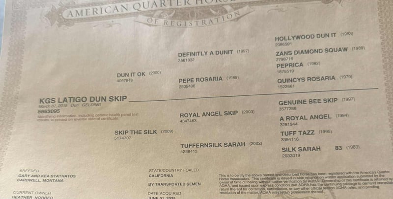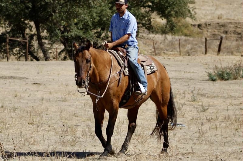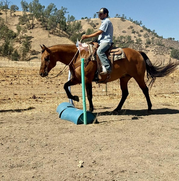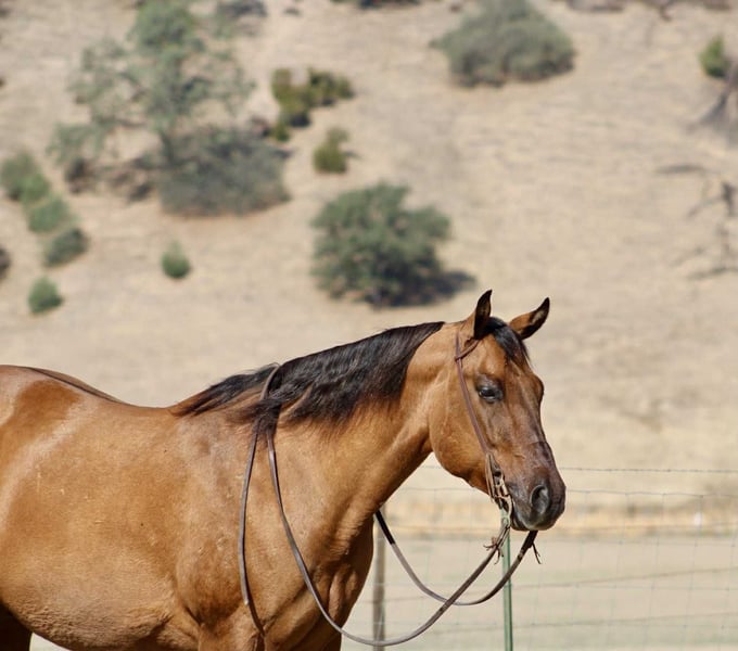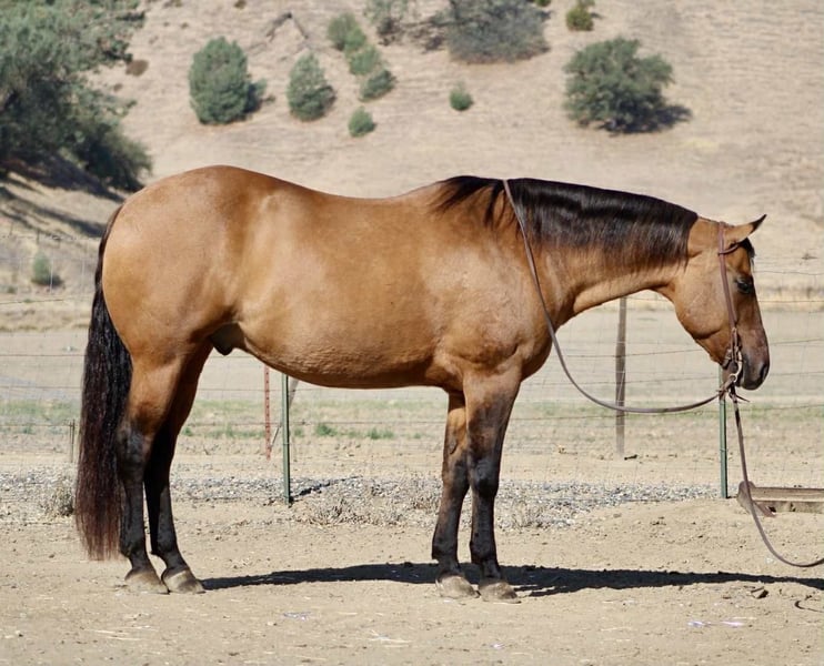 ONLINE AUCTION Place your bids at www.PlatinumEquineAuction.com Starting Bid $3500 Auction ends October 26th, 2025 Need a new saddle? Check out White Rock Saddles on our website or Facebook KGS Latigo Dun Skip – Where Style Meets Substance If you like them big, broke, and downright beautiful, here’s the one that turns heads everywhere he goes. KGS Latigo Dun Skip is a 2015 AQHA buckskin/dun gelding standing a true 16 hands, and he’s every bit as impressive in person as he looks on paper. This is that rare, picture-perfect, puppy-dog-gentle gelding that rides like a pro yet stays quiet and kind enough for absolutely anyone. Latigo is exceptionally broke — he’ll side-pass over poles, back through an L, spin, pivot, stop, and change leads so smooth it looks rehearsed. He’s earned AQHA points in Ranch Trail and Ranch Versatility, and his handle is everything you’d hope for: soft, responsive, and stylish. If you’re after the easy-going kind with buttons to show off, this is your boy. He’s the definition of seasoned. Latigo has been branded off of, gathered cattle, and put in real ranch work with the same calm, can-do attitude he brings to the show pen. Out on the trail he’s absolutely solid — he’s gone up narrow mountain passes, through brush, logs, creeks, bridges, and steep country, and across every obstacle imaginable: flags, tarps, bouncy balls, tires, and flying plastic — and never so much as flicks an ear. Traffic, dogs, wildlife — nothing fazes him. He’s easy in every way. Stands quiet for the farrier and vet, tacks up easy, hauls anywhere, and genuinely loves people. Ride him every day or once a month — he’ll saddle up the same. Latigo is that rare, steady-minded, kind-hearted gelding that makes you feel safe, look good, and have fun all at once. His pedigree backs it all up: by Dun It OK (son of Definitely A Dunit by the legendary Hollywood Dun It) and out of Skip The Silk, tracing to Genuine Bee Skip and Tuff Tazz. He’s AQHA DNA-verified and 5-panel N/N, combining reining style, cow sense, and rock-solid foundation breeding into one flawless package. From branding pens to show pens, trails to traffic, Latigo does it all — and looks good doing it. Handsome, handy, and honest through and through. Safe for the whole family to enjoy!!! Located in Paicines, California. Contact Dina with Longhorn Ranch 831-537-1915. ONLINE AUCTION Place your bids at www.PlatinumEquineAuction.com Starting Bid $3500 Auction ends October 26th, 2025 Need a new saddle? Check out White Rock Saddles on our website or Facebook