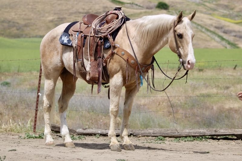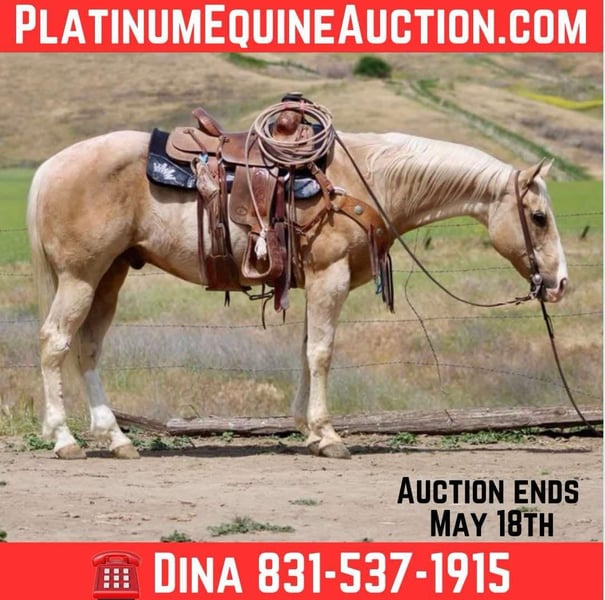 ONLINE AUCTION Place your bids at www.PlatinumEquineAuction.com Starting Bid $3500 Auction ends May 18th, 2025 Need a new saddle? Check out White Rock Saddles on our website or Facebook! Meet the beautiful Banjo, who will have your heart skipping a beat. This 11-year-old, 15-hand palomino gelding is a true trail partner who enjoys taking scenic rides while carefully crossing ditches, thick brush, and walking through rivers. He is quiet and confident, and is very surefooted. He has a nice, calm walk and is safe, trustworthy, and kind. Banjo goes out alone or in a group setting. He is the most dependable horse. Banjo is an easy-going guy that is safe for timid to advanced riders. In the arena, he has a nice collected lope with smooth transitions and a soft, easy stop and back up. He has gathered cattle and knows the ropes. He has also done trail obstacles with ease and is very comfortable going over bridges and covered wagons, walkovers, and has conquered anything we have tried with him. He is good with the flag, tarp, and ball. He has been used on camping trips, parades, and been to some ranch rodeos. He is very safe in traffic and will walk along automobiles and motorcycles with ease. He is good for the farrier, loads well, and travels great. He is great in a stall or pasture environment, stands patiently tied, easy to tack up and is such a pleasure to be around. He has zero bad habits and is very easy to get along with. He is truly a safe, easy-going companion. Please contact Longhorn Ranch, Dina 831-537-1915 located in Paicines ca,to meet this golden opportunity. ONLINE AUCTION Place your bids at www.PlatinumEquineAuction.com Starting Bid $3500 Auction ends May 18th, 2025 Need a new saddle? Check out White Rock Saddles on our website or Facebook!