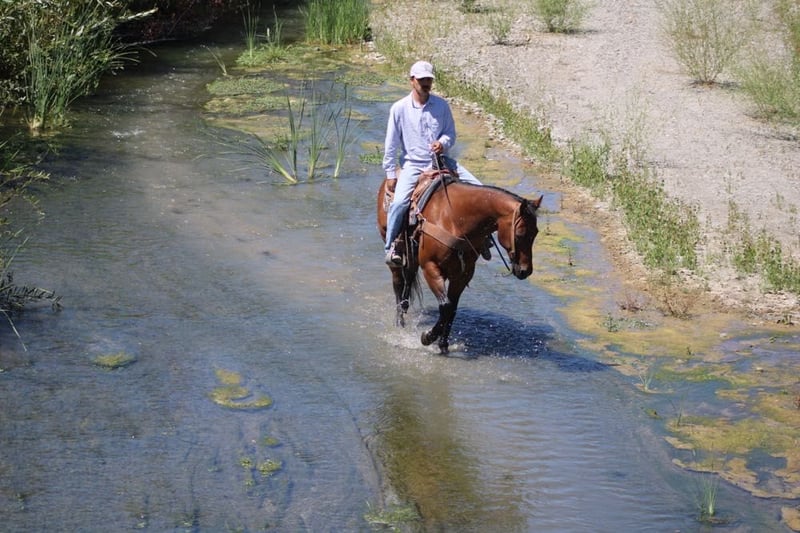 ONLINE-AUKTION Geben Sie Ihre Gebote unter www.PlatinumEquineAuction.com ab. Startgebot $3500 Die Auktion endet am 15. September 2024 Brauchen Sie einen neuen Sattel? Schauen Sie sich White Rock Saddles auf unserer Website oder Facebook an! Lernen Sie Adios kennen, das bemerkenswerte bay roan Pferd, dessen Anwesenheit so beruhigend ist wie eine sanfte Brise an einem warmen Sommertag. Mit einer Größe von 15 Händen, 10 Jahren und einem beeindruckenden Lebenslauf verkörpert er alles, was man sich von einem familienfreundlichen Reittier wünschen kann. Dieser außergewöhnliche Wallach ist nicht nur sicher für Kinder, er ist auch ruhig genug, um Omas und Ehemänner gleichermaßen zu begeistern. Mit seiner "Ich hab's schon erlebt"-Einstellung ist Adios in allen Bereichen des Reitsports hervorragend, vom Brandmarken, Sammeln, Sortieren, der Arbeit auf der Ranch - wo er sich jeder Situation anpasst - bis hin zum Befahren der anspruchsvollsten Pfade mit unerschütterlicher Gelassenheit. Er hat die Kunst des Neck Reining perfektioniert, nimmt mühelos Leinen auf und hat einen schönen gleitenden Stopp in der Arena, während er auf belebten Straßen oder bei lauten Maschinen unerschütterlich bleibt. Da er das Abenteuer nicht scheut, glänzt Adios bei Campingausflügen mit Übernachtung und Trailkursen, wo er seine Anpassungsfähigkeit unter Beweis stellt, indem er ohne mit der Wimper zu zucken um ihn herumfliegende Fahnen oder ihm ins Gesicht wehende Planen bewältigt. Dieser sanftmütige Bursche, der mit unerfahrenen Reitern geduldig umzugehen weiß, passt sein Tempo nahtlos an Ihr Können an - und ist dabei absolut ruhig und problemlos. Adios ist leicht einzufangen, zu satteln und zu striegeln wie ein großer Welpe und zeichnet sich als zuverlässiger Begleiter aus, der ein unvergleichliches Vertrauen unter dem Sattel bietet - ein seltenes Juwel, das jedes Quäntchen Bewunderung wert ist, das ihm in der Pferdeszene zuteil wird, denn es ist einfach unbeschreiblich, wie außergewöhnlich er ist. Kontaktieren Sie Longhorn Ranch Dina 831-537-1915 in Paicines, CA. ONLINE-AUKTION Geben Sie Ihre Gebote unter www.PlatinumEquineAuction.com ab. Startgebot $3500 Die Auktion endet am 15. September 2024. Brauchen Sie einen neuen Sattel? Schauen Sie sich White Rock Saddles auf unserer Website oder Facebook an!