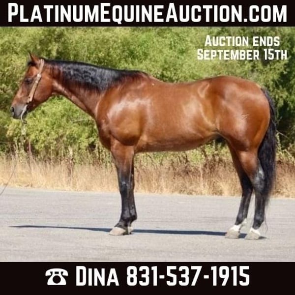 ASTA ONLINE Fate le vostre offerte su www.PlatinumEquineAuction.com Offerta iniziale 3500 dollari L'asta termina il 15 settembre 2024 Hai bisogno di una nuova sella? Scoprite White Rock Saddles sul nostro sito web o su Facebook! Vi presentiamo Adios, il notevole cavallo baio roano la cui presenza è confortante come una leggera brezza in una calda giornata estiva. Con un'altezza di 15 mani e un'età di 10 anni, con un curriculum di esperienze impressionante, incarna tutto ciò che si può desiderare in una cavalcatura adatta alle famiglie. Questo eccezionale castrone non è solo sicuro per i bambini, ma è anche abbastanza calmo da piacere a nonne e mariti. Con il suo atteggiamento da "già fatto", Adios eccelle in ogni aspetto della vita equestre, dal branding, alla raccolta, allo smistamento, al lavoro nei ranch - dove si adatta prontamente in ogni situazione - fino a percorrere i sentieri più impegnativi con una compostezza incrollabile. Ha perfezionato l'arte del neck reining, prendendo i guinzagli senza sforzo e facendo una bella sosta nell'arena, pur rimanendo imperturbabile in strade trafficate o con macchinari rumorosi. Non essendo uno che si sottrae all'avventura, Adios brilla durante le escursioni notturne in campeggio e i corsi di trail, dove dimostra la sua adattabilità gestendo senza battere ciglio le bandiere che gli sventolano intorno o i teloni che gli soffiano in faccia. Desideroso di piacere ma paziente con i cavalieri inesperti, questo ragazzo gentile è in grado di regolare il suo ritmo senza problemi in base al livello di abilità del cavaliere, pur rimanendo squisitamente calmo e senza problemi. Facile da catturare, da sistemare e da strigliare come un cucciolone, Adios si distingue davvero come un compagno affidabile che offre una sicurezza senza pari sotto la sella: una gemma rara che vale ogni grammo di ammirazione che gli viene conferita all'interno della comunità equina, dove non si può semplicemente descrivere quanto sia davvero straordinario.Non perdete questa rara opportunità di possedere un grande compagno di famiglia. Contattare Longhorn Ranch Dina 831-537-1915 Situato a Paicines, CA. ASTA ONLINE Fate le vostre offerte su www.PlatinumEquineAuction.com Offerta di partenza 3500 dollari L'asta termina il 15 settembre 2024 Avete bisogno di una nuova sella? Scoprite White Rock Saddles sul nostro sito web o su Facebook!