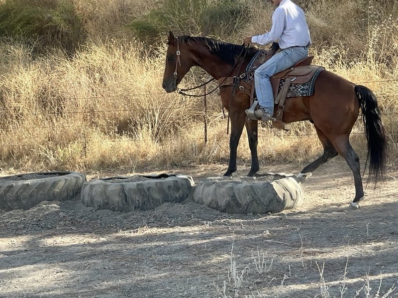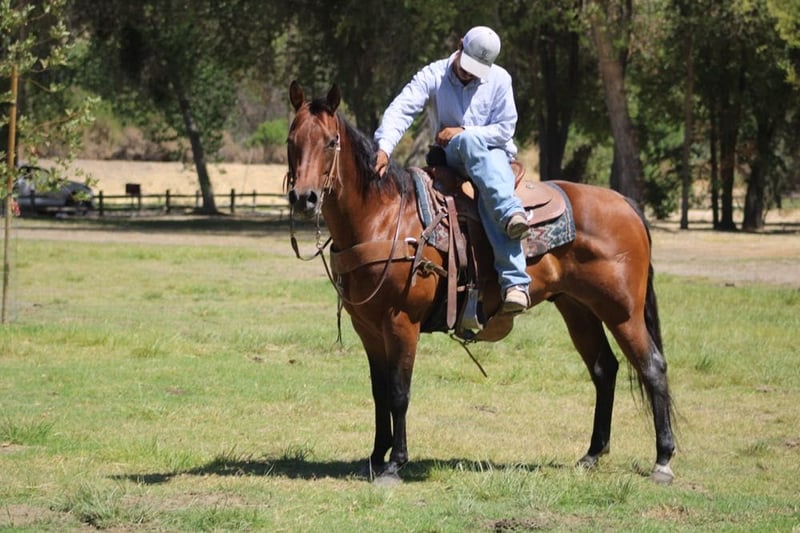 ONLINE AUCTION Place your bids at www.PlatinumEquineAuction.com Starting Bid $3500 Auction ends September 15th, 2024 Need a new saddle? Check out White Rock Saddles on our website or Facebook! Meet Adios the remarkable bay roan horse whose presence is as comforting as a gentle breeze on a warm summer day. Standing at 15 hands and 10 years old boasting an impressive resumé of experience, he embodies everything you could possibly desire in a family-friendly mount. This exceptional gelding is not just safe for children; he’s also calm enough for grandmas and husbands alike to enjoy. With his “been there, done that” attitude, Adios excels in every aspect of equestrian life, from branding, gathering, sorting, ranch work—where he readily adapts in every situation —to navigating the most challenging trails with unwavering composure. He has perfected the art of neck reining, picking up leads effortlessly and a nice sliding stop in the arena while remaining unflappable around busy streets or noisy machinery. Not one to shy away from adventure, Adios shines during overnight camping trips and trail courses where he showcases his adaptability by handling flags flapping about him or tarps blowing into his face without batting an eye. Eager to please yet patient with inexperienced riders, this gentle boy can adjust his pace seamlessly according to your skill level—all while being exquisitely calm with zero issues. Easy to catch, tack up and groom like a big puppy at heart, Adios truly stands out as a dependable companion who offers unparalleled confidence under saddle—a rare gem worth every ounce of admiration bestowed upon him within the equine community where it simply cannot be described how extraordinary he truly is.Don’t miss out on this rare opportunity to own a great family partner. Contact Longhorn Ranch Dina 831-537-1915 Located in Paicines, CA. ONLINE AUCTION Place your bids at www.PlatinumEquineAuction.com Starting Bid $3500 Auction ends September 15th, 2024 Need a new saddle? Check out White Rock Saddles on our website or Facebook!