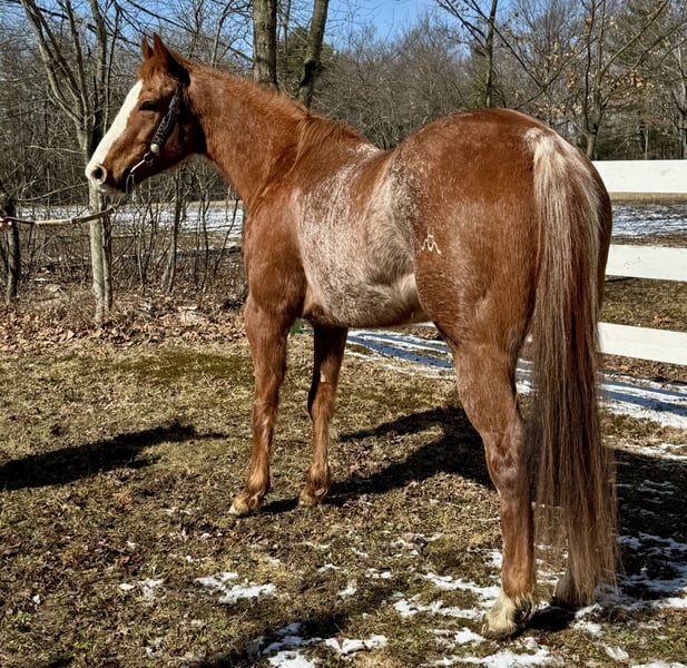 "AVAILABLE ON ONLINE HORSE AUCTION AT www DOT MagicHorseAuction DOT com BIDDING OPEN NOW thru TUESDAY | MAY 13th - BUY IT NOW AVAILABLE! *Final price will be determined on auction site* CONSIGNOR CONTACT INFO: Cori Ames 814-229-2674 LOCATION: Shippenville, PA "Hello, my name is Baylor. I am a Red Roan Registered Quarter Horse, I turn 11yrs at the end of May, and I stand around 15.2 hands. My registered name is HesJessDancing. I mainly enjoy barrel racing, and also trail riding, but I also love participating in several other gaming events including pole bending, raised box keyhole, and more. I have been taken to the county fair which I qualified for districts each time, and also moved onto states. I have run in rodeos, large and small shows, indoor and outdoor arenas. I can be handy and would be best fit with a confident rider, not for beginners. On the trail I can cross water, logs, bridges, and will go anywhere you tell me to go. I have been riding mostly solely on a trail but can also be ridden in a small to large groups. I am looking for my forever home. *He has right foundation, solid feet with good confirmation. *He only has front shoes on right now, and trail rides with saddle or bareback. *He ties, loads, hauls, baths, and great for the farrier. *He's a kindhearted boy who will come to you in the pasture. *On 4/4/25 he was fully checked by the vet, given Encephalomyelitis- Rhinopneumonitis, Influezna Eastern/Western, killed virus, tetanus, rabies, and coggins. A CVI will be done once sold. *I am including images from previous vet checks and his CVI from last year. The only reason Baylor is being sold is due to no fault of his own, but because my daughter and him are not connecting. He has done a lot better with a more confident rider. We recommend a very confident intermediate, or experienced advanced rider."