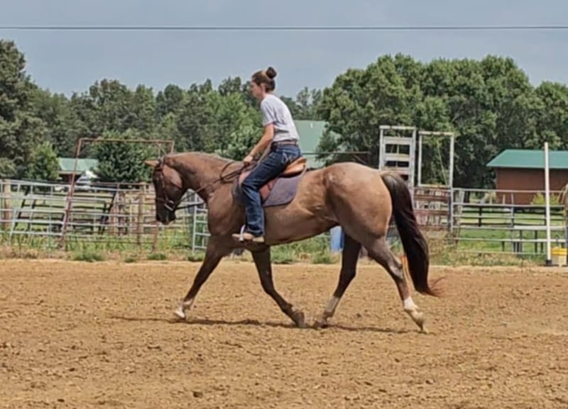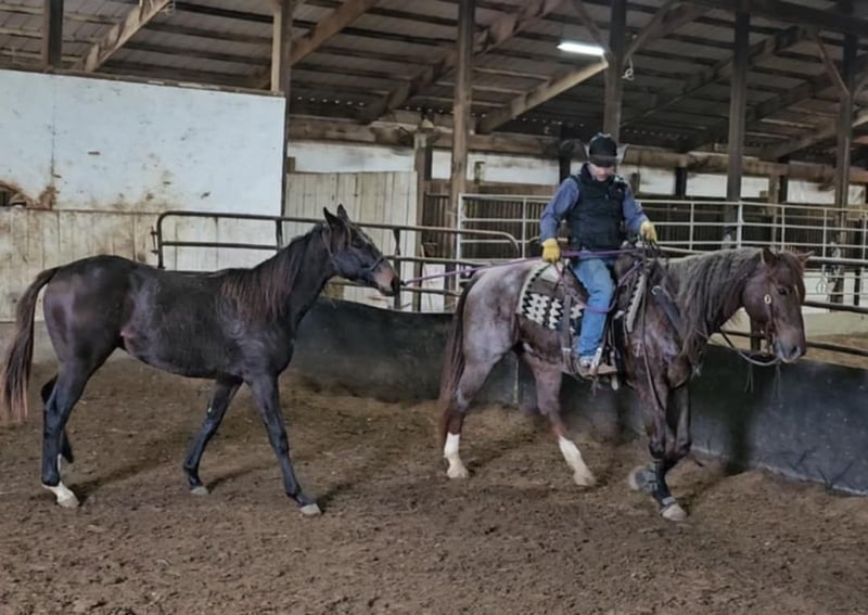 ONLINE-AUKTION Geben Sie Ihre Gebote ab unter www.PlatinumEquineAuction.com Startgebot 3500 $ Die Auktion endet am 29. Dezember 2024 Brauchen Sie einen neuen Sattel? Schauen Sie sich die White Rock Saddles auf unserer Website oder Facebook an! DDD Busy Blazin Batt ist ein 10-jähriger AQHA RED ROAN Wallach. Er hat eine Stockmaß von 15 hh und wiegt etwa 1100 lbs. Hier ist einer der coolsten Wallache mit einer langen, schönen, dichten Mähne und einem dichten Schweif. Bart wurde in den letzten 6 Jahren intensiv im Gelände geritten, hat Übernachtungscamps besucht und in den eingezäunten Weiden gearbeitet. Er ist ein sehr selbstbewusster Trail-Pferd, das auf den Trails schon alles gesehen hat. Dieser Wallach überquert Wasser, Baumstämme, Gräben usw. ohne zu zögern. Er hat eine großartige Einhand-Nackenverzäumung, gibt dem Zügel seitlich und vertikal nach. Wir haben ihn durch unsere Desensibilisierung gebracht. Wir haben ihn sogar englisch geritten und er sieht dabei wunderschön aus! Dieser Wallach geht im Schritt, Trab, Galopp gesammelt und kann seitwärts gehen. Er reagiert gut auf Ihren Sitz und Ihre Beine. Er ist ein Pferd, das in der Ranch-Arena richtig schick aussehen wird. Dieser Wallach hat eine natürliche, tiefe und auffällige Kopfhaltung. Bart hat einen umwerfenden verlängerten Trab! Wenn Sie nach einem Trail-Pferd suchen, das bereits die Sehenswürdigkeiten gesehen hat und bereit ist, sie erneut zu erkunden oder in der Arena weiterzumachen, hier ist er! Sie werden keinen anderen wie ihn finden! Er steht den ganzen Tag angebunden, ist großartig beim Scheren, baden, beim Hufschmied, lädt ein und entlädt sich perfekt aus dem Anhänger. Für weitere Informationen rufen Sie Littlepage Livestock Jacob unter 270-635-5572 an. Standort: Robards, KY. ONLINE-AUKTION Geben Sie Ihre Gebote ab unter www.PlatinumEquineAuction.com Startgebot 3500 $ Die Auktion endet am 29. Dezember 2024 Brauchen Sie einen neuen Sattel? Schauen Sie sich die White Rock Saddles auf unserer Website oder Facebook an!