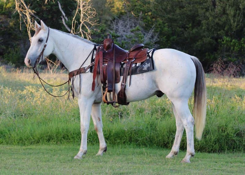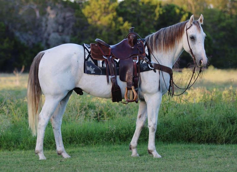 NLINE AUCTION Place your bids at www.PlatinumEquineAuction.com Starting Bid $3500 Auction ends November 3rd, 2024 Need a new saddle? Check out White Rock Saddles on our website or Facebook! You guys are not going to want to miss this! If you’re looking for the ultimate all around family horse for absolutely everybody…Just stop scrolling because you’ve just found the one! Our guy Lloyd is once in a life time gelding. ◻️An absolutely Bombproof, gentle kind soul for any age from 9-99? A horse that is handy enough but calm enough to do any job or anything you ask of him? The ultimate kids horse that they can have hours of fun with? ◻️A flag horse? Parade horse? The perfect gelding to ride down the trails all day long without any trouble whatsoever? A great lesson horse? Or Drill team? Maybe a sorter? To go ranch on? ◻️A playday horse? How about this guy! We just took him the the chuck wagon races all weekend and he handled it like a pro, check out his video! There was loud noises, fireworks, screaming people, and just a whole lot of craziness! We cannot say one bad thing about this guy! Lloyd is an old soul and deserves the absolute best home and we will make sure of it! He is 15.1hh tall and just 10 years old! He’s kind, patient and always willing to work! He saddles very quiet and always rides off the same everytime. Lloyd has been used to work cattle, Give riding lessons, and trail rode extensively! He is the smoothest thing you can sit on, with a rocking chair lope and a floating smooth trot! Lloyd would be perfect for a grand entry horse or even a rodeo announcers horse. He has been rode by all ages! I would trust him with anyone that can hold a pair of reins and sit in the saddle! He hauls great loads and backs off the trailer. He can be turned out with others or by him self. He will ride out alone or ride nose to tail. He will stand tied all day long as well. Lloyd is very patient with beginners and puts up with a lot! Absolutely no buck, rear, kick, runoff, silliness whatsoever. He has a beautiful floating trot, lopes off great both directions and never misses a beat! There aren’t many horses out there like him, you truly won’t be disappointed! Be sure to check out his video below, worth the watch! Located in Stephenville, TX. We can help arrange hauling anywhere in the US, Hawaii or Canada! We have an amazing 5 star hauler that goes anywhere in the country! Please call or text Makenna Hartzel 817-659-3778 for more information. ONLINE AUCTION Place your bids at www.PlatinumEquineAuction.com Starting Bid $3500 Auction ends November 3rd, 2024 Need a new saddle? Check out White Rock Saddles on our website or Facebook!