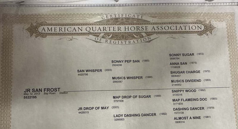 ONLINE-AUKTION Geben Sie Ihre Gebote unter www.PlatinumEquineAuction.com ab. Startgebot $3500 Die Auktion endet am 25. August 2024 Brauchen Sie einen neuen Sattel? Schauen Sie sich White Rock Saddles auf unserer Website oder auf Facebook an! Lernen Sie Big Sky kennen, unseren bemerkenswerten braunen Roan-Wallach, dessen umfangreiche Ranch-Erfahrung ihn zu einem hervorragenden Begleiter für Rancher macht. Da er sein ganzes Leben auf einer Ranch verbracht hat, verfügt Big Sky über einen großen Erfahrungsschatz und hat seine Zuverlässigkeit und Vielseitigkeit unter Beweis gestellt. Wir hatten das Privileg, ihn direkt von der Familie zu erwerben, die ihn aufgezogen hat, so dass sein Hintergrund und seine Ausbildung gut dokumentiert und gründlich sind. Dieser Wallach ist außergewöhnlich trittsicher in unwegsamem Gelände, da er in seinem Leben schon viel Land gesehen hat. Von felsigen Hängen bis hin zu unebenen Pfaden navigiert Big Sky mit Leichtigkeit durch anspruchsvolle Landschaften. Dank seiner umfangreichen Ranch-Erfahrung hat er eine Vielzahl von Szenarien und Umgebungen kennengelernt, so dass es kaum etwas gibt, was er nicht schon einmal gesehen hat. Seine Zuverlässigkeit unter so unterschiedlichen Bedingungen macht ihn zu einem unschätzbaren Wert für jeden Reiter, der Vertrauen und Stabilität in sein Pferd schätzt. Big Sky bewegt sich mit sanften, komfortablen Gängen, die jeden Ritt zu einem Vergnügen machen, ob Sie nun hart auf der Ranch arbeiten oder einen gemütlichen Ausritt genießen. Auf dem Reitplatz hat er einen schönen, weichen Trab und Galopp. Er dreht gesammelte Kreise in beide Richtungen, hat einen schönen Stopp und reitet schön ohne Beindruck. Seine ständige Bereitschaft, seinem Reiter zu gefallen, zeigt sich in jeder seiner Aktionen und macht die Arbeit mit ihm zu einer Freude. Sein natürlicher Leistungswille und sein ruhiges, kooperatives Verhalten sorgen für ein außergewöhnliches Reiterlebnis. Big Sky ist ein ganz besonderer Wallach, dessen Kombination aus Trail-Erfahrung, Ranch-Arbeit und Arena-Fähigkeiten ihn zu einem idealen Partner für jede reiterliche Aktivität machen. Seine gründliche Ausbildung, seine Trittsicherheit und seine sanften Gänge sorgen für einen zuverlässigen und angenehmen Ritt. Verpassen Sie nicht die Chance, diesen hervorragenden braunen Wallach in Ihren Stall aufzunehmen. Wenden Sie sich an Triple T Livestock Colton 218-770-8986 mit Sitz in Nevis, NM. ONLINE-AUKTION Geben Sie Ihre Gebote unter www.PlatinumEquineAuction.com ab. Startgebot $3500 Die Auktion endet am 25. August 2024. Brauchen Sie einen neuen Sattel? Schauen Sie sich White Rock Saddles auf unserer Website oder Facebook an!