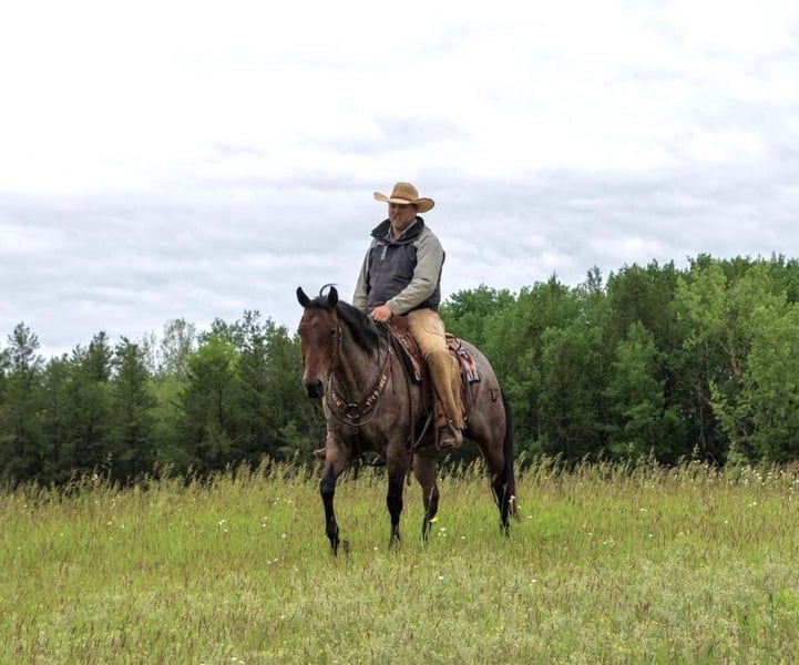 ONLINE AUCTION Place your bids at www.PlatinumEquineAuction.com Starting Bid $3500 Auction ends August 25th, 2024 Need a new saddle? Check out White Rock Saddles on our website or Facebook! Meet Big Sky, our remarkable bay roan gelding, whose extensive ranch experience make him a standout companion for ranchers. Having been ranched on his entire life, Big Sky comes with a wealth of experience and a proven track record of reliability and versatility. We had the privilege of acquiring him directly from the family who raised him, ensuring his background and training are well-documented and thorough. This gelding is exceptionally sure-footed in rough terrain, having seen a lot of country throughout his life. From rocky hillsides to uneven trails, Big Sky navigates challenging landscapes with ease. His extensive ranch experience means that he has encountered a wide range of scenarios and environments, ensuring there’s little you could show him that he hasn’t seen before. His reliability in such diverse conditions makes him an invaluable asset for any rider who values confidence and stability in their horse. Big Sky moves with smooth, comfortable gaits, making every ride a pleasure, whether you’re working hard on the ranch or enjoying a leisurely trail ride. In the arena he has a nice smooth trot and lope. He lopes collected circles both directions, has a nice stop, and rides nicely off leg pressure. His consistent willingness to please his rider is evident in his every action, making him a joy to work with. This natural eagerness to perform and his calm, cooperative demeanor combine to create an exceptional riding experience. Big Sky is a truly special gelding whose combination of trail experience, ranch work, and arena skills make him an ideal partner for any equestrian activity. His thorough training, sure-footedness, and smooth gaits ensure a reliable and enjoyable ride. Don’t miss the chance to add this outstanding bay roan gelding to your stable. Contact Triple T Livestock Colton 218-770-8986 Located in Nevis, NM. ONLINE AUCTION Place your bids at www.PlatinumEquineAuction.com Starting Bid $3500 Auction ends August 25th, 2024 Need a new saddle? Check out White Rock Saddles on our website or Facebook!