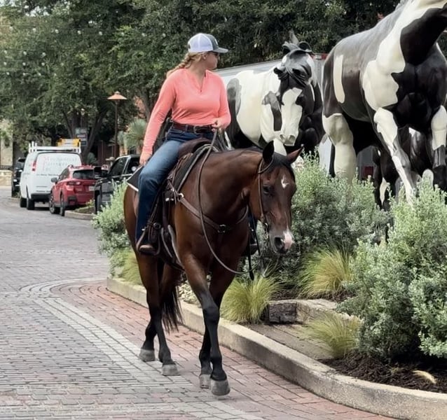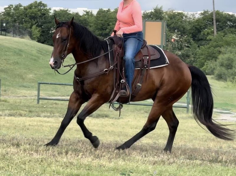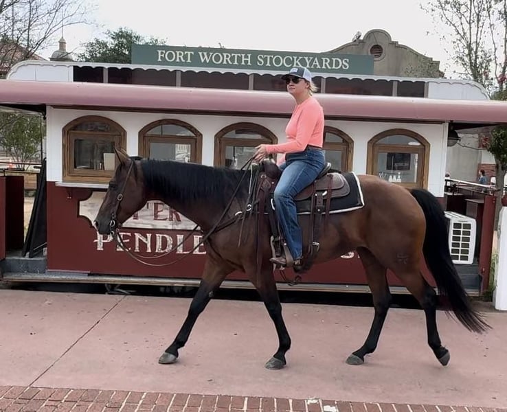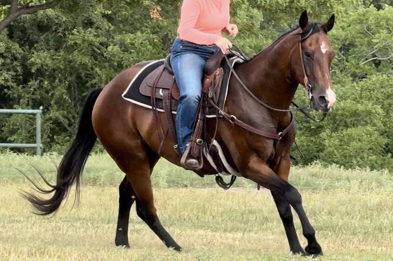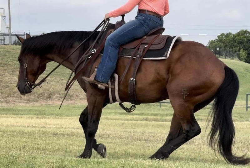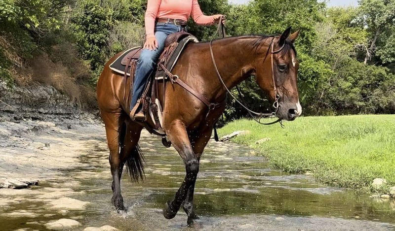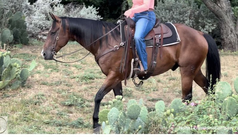 ONLINE AUCTION Place your bids at www.PlatinumEquineAuction.com Starting Bid $3500 Auction ends August 11th, 2024 Need a new saddle? Check out White Rock Saddles on our website or Facebook! Boon SF Starlight is a 2013 model, 15.3H bay AQHA gelding. We LOVE Boon. He’s been one of the best, most broke, GORGEOUS horses we’ve offered in a long time. He’ll do it all, you name it, it’s on his resume. Kids, adults, beginners, pros, wives, husbands, mother in laws, you name the person and they can ride him. He’s seen a million miles of country and has been used as a REAL deal ranch horse. You can do just about anything on this gelding from the ranch to the arena and he’s the perfect all around, versatile horse for the whole family. He’s FANCY broke! There won’t be a thing you don’t like about the way this guy handles. Boon neck reins with ease, moves perfectly off leg and has a HUGE stop. He’s GENTLE and safe! He goes the exact speed you ask, when you ask it and he’ll walk a snails pace or lope right off in your hand if desired. He rides low headed and “chill” all the time and never is hot or antsy. He takes to new situations and places perfectly! He has such a sweet calm, cool collected, people pleaser personality. Boon would be the PERFECT fit for anyone looking for one the whole family can enjoy, or anyone wanting a fancy, ready to go ranch versatility horse, ranch horse, 4H horse, sorter or fancy trail horse! He’s traffic safe, trail safe, ATV safe, and he goes through water! He is absolutely a barn favorite here and anyone can jump on and go! He’ll ride your ability, if you don’t know how to operate his buttons, you don’t need to in order to enjoy a safe fun ride. Grandma can jump on and go on a turtle pace trail ride, then a cowboy can go drag calves on him. Boon is one of a kind and they sure don’t come like him often. He has a phenomenal pedigree, brains and talent. He does everything you need a good horse to do with zero issues and gets along with everyone great. He is UTD on teeth and feet and is ready for his next person to enjoy him! Go to his website page northtexashorsecompany.com/boon for more pictures and footage! Please call Blair with North Texas Horse Company for more info at 817-757-3046. We are located in Weatherford, TX and can help arrange affordable shipping to anyone!! ONLINE AUCTION Place your bids at www.PlatinumEquineAuction.com Starting Bid $3500 Auction ends August 11th, 2024 Need a new saddle? Check out White Rock Saddles on our website or Facebook!