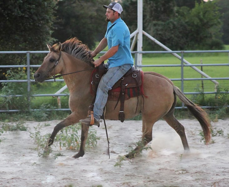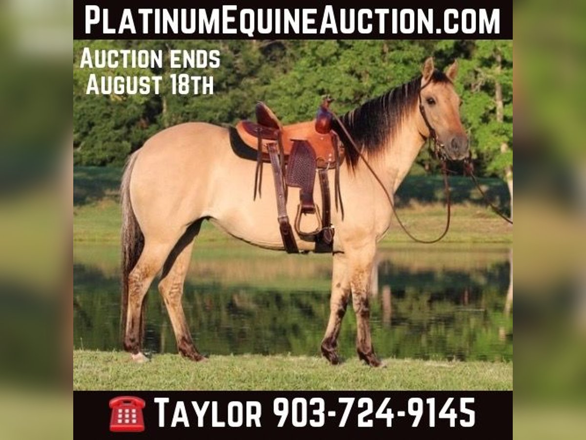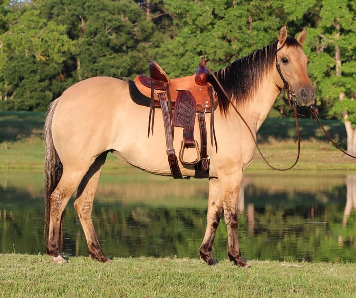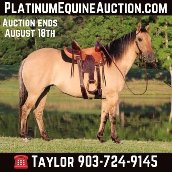 ONLINE AUCTION Place your bids at www.PlatinumEquineAuction.com Starting Bid $3500 Auction ends August 18th, 2024 Need a new saddle? Check out White Rock Saddles on our website or Facebook! Check out Tiana… Are you looking for the perfect all around family horse? One that can put in a days work and also tote the little ones around while having all the color and shape you can dream of? Look no further, Tiana is your gal! Tia is a 12 year old dunskin mare that stands 13.3 hands tall, is sound, and has ALL the shape in ALL the right places! We have been using Tia outside to tag claves, ride trails, check fence, and we have also been roping breakaway calves on her in the arena. This little mare really likes to get in the dirt and would be a phenomenal full time heel or calf horse for an old pro or even someone learning. She is the perfect example of a true all around family horse, take her to the youth ranch rodeo in the morning and go heel steers on her at the roping that night. Where ever you point her, she goes with ease and looks good doing it! Not only is Tia great under saddle, she also has the absolute best personality to match! She is one of our favorites around the barn and all the kids absolutely love using her anytime anywhere. When I bought Tia, she was owned and being used by a 12 year old little boy so she is no stranger to children and all the fun & rowdy commotion that comes with toting little ones. She has a kind and gentle spirit and will follow you around the pasture, no feed required….. to say she is in your pocket is an understatement for this sweet mare! Tia loves all the attention she can possibly get including baths, trims, and daily grooming. I just had her teeth floated on 5/20/24 and she also had her feet trimmed the week before so she is utd and ready to go! (All receipts are on hand for proof). She also gets along with everyone in the pasture and is a complete joy to own. Horses with her demeanor and stunning appearance do not come around very often, she is a true jewel and will make the perfect addition to anyones family. If your looking for something that will check all the boxes, Tiana is your gal! Please feel free to call/text me, Taylor Henderson, (903) 724-9145, anytime for any questions you may have. We are conveniently located in Slocum, TX which is almost smack dab between Dallas & Houston. It is 2 hours from the Houston IAH airport or about 2 hours and 20 minutes from Dallas Ft Worth airport. I can help arrange shipping to anywhere you need as well! Please feel free to check out my previous horses/ponies and reviews on my facebook page Henderson Horse & Pony Co. I look forward to hearing from you! ONLINE AUCTION Place your bids at www.PlatinumEquineAuction.com Starting Bid $3500 Auction ends August 18th, 2024 Need a new saddle? Check out White Rock Saddles on our website or Facebook!