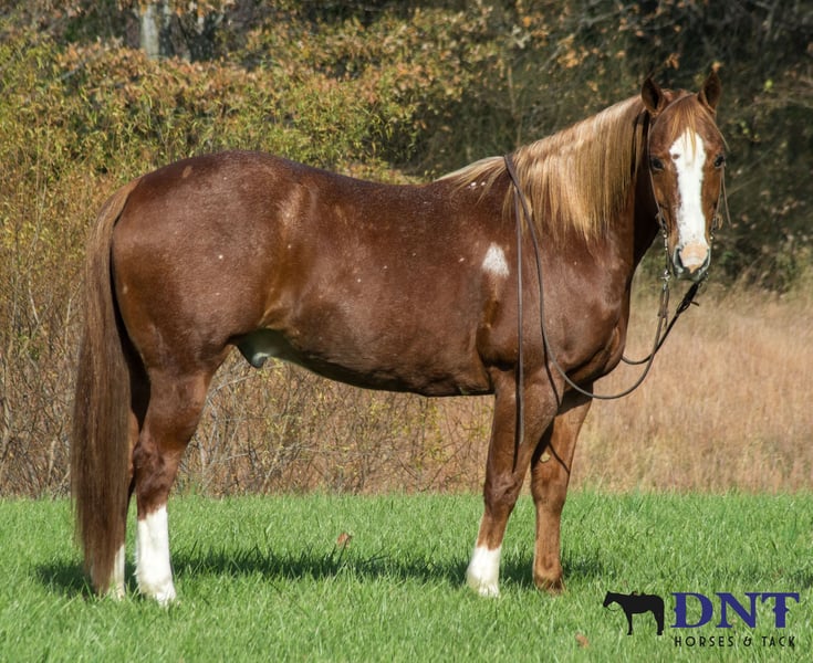 ⚜️ 𝓽𝓱𝓮 𝐇𝐨𝐫𝐬𝐞𝐦𝐚𝐧'𝐬 𝓢𝓱𝓸𝔀𝓬𝓪𝓼𝓮⚜️ Happening now thru MONDAY | DECEMBER 1st - Available EXCLUSIVELY on HorseBid's website! For more details and to register visit: www.Horsebid.com CONSIGNOR CONTACT: DNT Horses 270-844-2400 LOCATION: Henderson, KY BREED: Quarter Horse REGISTERED: No REGISTERED NAME: Cody COLOR: Chestnut Red Roan HEIGHT: 14.2 AGE: 13 GENDER: Gelding CODY WILL SELL COMPLETELY UNRESERVED TO THE HIGHEST BIDDER AT SALE TIME!!! DON’T MISS OUT ON THIS EXCEPTIONAL GELDING!!! Cody is a gorgeous 13 year old grade chestnut roan gelding. Along with his cuteness, he is the perfect height standing at 14.2 hands tall and all the shape you could want. Cody isn't just an eye catcher he is broke for any level rider. Cody will walk all day if asked. He has a nice cowboy trot to him and transitions to a nice lope. He neck reins with one hand or you can ride him two handed, responsive to leg cues, backs and stopd when asked. He is out standing on the trails and has been trail ridden extensively through many different types of terrain. He is sure footed and honest. Cody is not spooky and will cross creeks, go through any body type of water, thick brush, logs, bridges, rough terrain, up and down cliffs with ease. He has been rode on the road and is use to all kinds of traffic, heavy machinery and ATV’s. He is also dog safe. You can ride Cody out alone with ease or with other horses. He's also been used to sort and pen cattle in the fields as well as taken to local cattle sorting. Cody will stand still for you to get on him from the ground or a mounting block. He stands to be groomed, fly spray, stands still to be saddled, takes the bridle with ease, bathes good, loads like a dream, clips great, and stands for the farrier. UTD on vaccines, coggins and farrier. We invite anyone and everyone to come meet and ride Cody at our barn in Henderson, Kentucky. We are happy to assist with transportation arrangements. For any questions about Cody please contact Tasha 270-844-2400