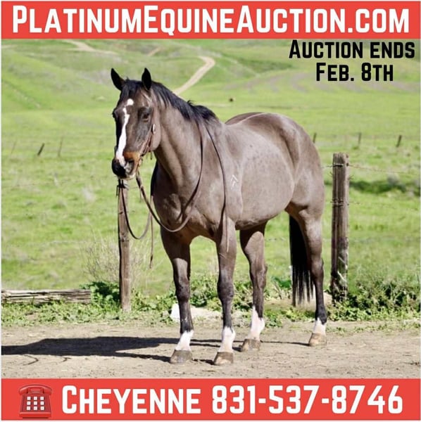 ONLINE AUCTION Place your bids at www.PlatinumEquineAuction.com Starting Bid $3500 Auction ends February 8th, 2026 Need a new saddle? Check out White Rock Saddles on our website or Facebook Nelson is a big, solid conformationally correct, 15.1HH bay gelding, 14 years old, and the kind of once-in-a-lifetime horse that defines the word exceptional. He is a true, bona fide ranch horse, a finished switch-ender team roping horse, and one of the safest, most dependable trail horses you will ever own. Horses with this level of experience, versatility, and honesty are extremely rare. Nelson is the ultimate confidence-builder. Whether ridden daily or left off for months, he comes out exactly the same every time, quiet, reliable, and ready to go to work. He has absolutely no buck, no spook, and no silly behavior. His demeanor is steady and kind, making him suitable for riders of any age, size, or experience level. He is the definition of a horse you can trust. On the trail, Nelson is truly bombproof. He is sure-footed and confident in all terrain, willingly crossing water, brush, logs, and steep or rocky ground without hesitation. Wildlife, traffic, and new environments do not bother him. He is the type of trail horse you can relax on, knowing he will take care of you every step of the way, whether you’re enjoying a quiet ride or covering long miles. In the arena, Nelson is broke, fancy, and soft. He carries a low head, stays collected, and lopes beautiful, correct circles. He has a big, honest stop and turns smoothly with minimal cue, light in the bridle and easy to guide with a loose rein or neck rein. In the roping pen, Nelson is seasoned and dependable. He stands calm and flat-footed in the box, scores off your hand, runs hard, and has excellent rate to the cow. He is big and powerful enough to pull hard when asked, yet remains gentle, forgiving, and easy to handle allowing even beginner riders to rope and ride him with confidence. Nelson is a true barn favorite and a horse that is incredibly difficult to let go of. His combination of talent, safety, versatility, and honesty is something that simply does not come around often. Watch his video and come see him in person, Nelson is the kind of gelding that speaks for himself. He is located in Bitterwater, CA. Contact Cheyenne for more information at 831-537-8746. ONLINE AUCTION Place your bids at www.PlatinumEquineAuction.com Starting Bid $3500 Auction ends February 8th, 2026 Need a new saddle? Check out White Rock Saddles on our website or Facebook