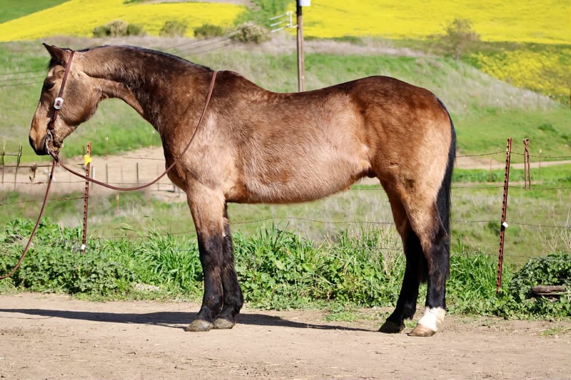 "AVAILABLE ON ONLINE HORSE AUCTION AT www DOT PlatinumEquineAuction DOT com BIDDING OPEN NOW thru SUNDAY | FEBRUARY 15TH! *Final price will be determined on auction site* CONSIGNOR CONTACT INFO: Longhorn Ranch LOCATION: Paicines, CA OSR SHINING PLAYBOY “Playboy” 2012 Buckskin Gelding • AQHA Registered • 15 Hands • Stout Built. If you’re searching for a gelding that combines standout looks, a big heart, and some of the most respected bloodlines in the performance horse world, Playboy is one you need to meet. He is the kind that catches your eye, earns your trust, and keeps it — a horse that’s as enjoyable to own as he is to ride. Bred for talent and longevity, Playboy is sired by OSR Sparks Oak Dunit, a son of the legendary Shining Spark, one of the most influential sires in performance horse history. On the bottom side, he traces to Freckles Playboy, Doc’s Hickory, and Doc Bar — cornerstone names known for producing athletic, trainable, and good-minded horses. These are classic bloodlines you simply don’t see very often anymore, and they continue to prove themselves generation after generation. Playboy is a more laid-back, easygoing gelding that is a pleasure in every setting. Out on the trail, he is a true cruiser — relaxed, confident, and happy to take in the scenery. He has a solid foundation of trail experience and handles a wide variety of terrain with ease. He willingly crosses water, travels through brush, and goes wherever you point him. Playboy has been used for ranch work and is comfortable stepping out to do a job or heading out for a quiet ride. He is great around traffic, wildlife, other ranch animals, and ranch equipment. Playboy has been exposed to obstacles and handles flags, tarps, and other ranch-style obstacles with a quiet mind. In the arena, Playboy has nice style and a smooth way of going. He walks, trots, and lopes easily, carries himself correctly, and offers a soft, comfortable lope. He is responsive, easy to guide, and always aims to please his rider. Playboy ties, clips, and is good for the farrier. He is a confidence-building kind of gelding — steady, sensible, and honest — and one that is safe day in and day out. Beginners can get along well with him, yet he is still quality enough for an experienced rider to appreciate. Built stout with good bone and substance, he feels solid underneath you and ready for anything. Playboy is a rare find — a good-minded, good-moving gelding with timeless bloodlines, a laid-back attitude, and a whole lot of try. Located in California. Shipping can be arranged nationwide. If you would like to find out more about Playboy, please contact: Longhorn Ranch – Dina 831-537-1915