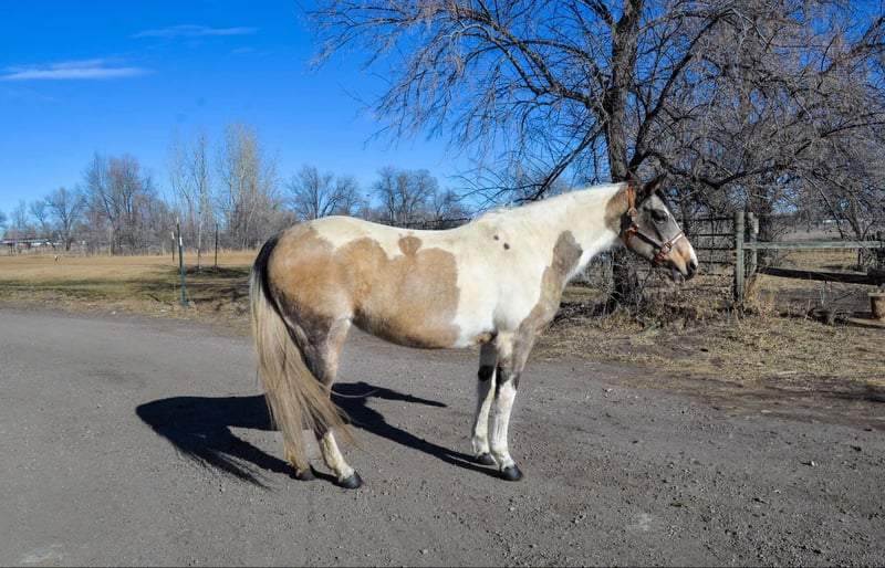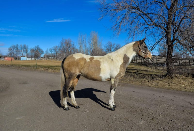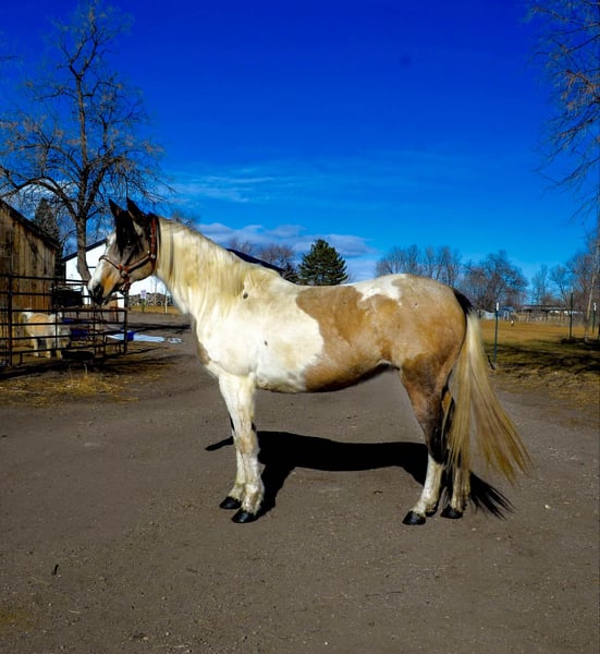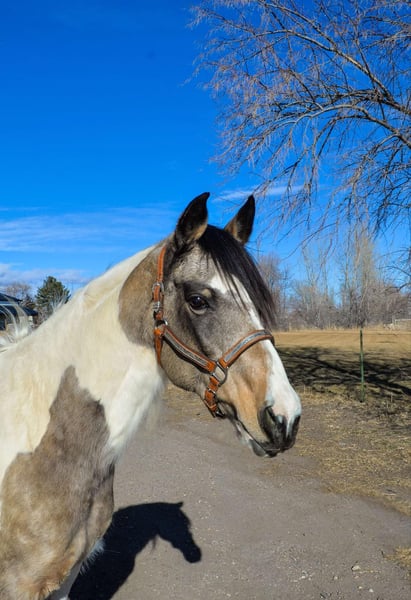 ONLINE AUCTION Place your bids at www.PlatinumEquineAuction.com Starting Bid $3500 Auction ends February 3rd, 2025 Need a new saddle? Check out White Rock Saddles on our website or Facebook! Lululemon (aka Lulu) is a 13 year old, 15hh buckskin paint mare that is one of the smartest mares out there! You could literally teach this mare algebra if you wanted to. She is eager to please, LOVES games (or anything new to learn) and is an absolute gem to be around on the ground and in saddle! (Not to mention built well and absolutely stunning!) Lulu was trained by a level 4 parelli student and has EXTENSIVE Talent and skills in the parelli world! , you can point her around an obstacle course with just your finger or lunge outside of the arena with just your voice and body language, on top of hundreds of little games she knows (and a bow!) Lulu is also an extreme athlete and excels in the cross country, hunter jumper and eventing world! This mare has never refused a jump and has incredible endurance, athleticism, scope and tuck! Lulu is well versed on trails too! Whether you’re going on a long mountain trip or a quick ride through town she is up for the adventure! She is very used to crazy and chaotic scenes and there is nothing on the trail that could spook her! We have also done some western pleasure and western dressage training with Lulu which she has taken a liking too and picked up on quickly! She is an extremely fancy mover with a great headset and very supple bodied. No matter what you want to do this mare is up for the job and extremely capable. Watch her video and come see how incredible Lulu truly is! Call Dynamite Horses Thea 970-632-3644 with any questions. Located in Fort Collins, CO. ONLINE AUCTION Place your bids at www.PlatinumEquineAuction.com Starting Bid $3500 Auction ends February 3rd, 2025 Need a new saddle? Check out White Rock Saddles on our website or Facebook!
