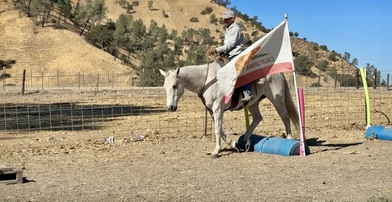 ONLINE AUCTION Place your bids at www.PlatinumEquineAuction.com Starting Bid $3500 Auction ends November 17th, 2024 Need a new saddle? Check out White Rock Saddles on our website or Facebook! Hot Frosted Boon the most incredible 15-hand grey gelding you will ever lay eyes on. This 2012 AQHA is a prime example of stellar breeding, boasting Smart Little Lena and the late Peptoboonsmal in his bloodlines. He is friendly will meet you at the gate and put his head in the halter ready to take on any adventure. Frosty is impeccably trained and gentle for riders of any skill level you can feel confident letting the littlest equestrians handle this sweet boy. He is safe for kids,husbands,grandmas,anyone who can climb on him he will take great care of. He will ride Bridleless, Bareback, in halter you name it you can do it on this horse. He has been a reliable ranch horse all his life, attesting to the extensive training he has received. Such horses are worth their weight in gold, and Frosty is no exception. He can handle any ranch task with ease, from rounding up cattle, to tying off on, branding and working gates, all while maintaining a calm demeanor. In the arena, he truly shines with his smooth slow collected lope, correct head carriage, and ability to pick up leads effortlessly. As if Frosty’s skills weren’t impressive enough, he also excels as a head horse. His is superb in the box and he easily runs to the hip and rates nicely he faces on a dime. He can be roped on by beginners to advance ropers. He is also a nice heel horse. Not only that, he excels on trails and he will cruise along with you enjoying the sights. He will go out alone or ride with friends doesn’t mind being in the front back or middle of the pack. Frosty is great at navigating through brush, steep mountains, and will Swim across Ponds he is sure footed and knows where his feet are. Frosty has encountered tons of wildlife such as deer, pigs, wild turkeys and elk. Frosty has also seen all obstacles such as bridges , car wash and will walk over tires without hesitation or fear and he will even do it all with no bridle. Frosty is even traffic safe handling speeding cars and semis blowing by. His attributes could fill a book – he truly is an all-around gelding that can do anything you ask of him with his kind disposition. And when it comes to handling, Frosty is a dream loading, tying, clipping, bathing, and working wonderfully with the farrier are all second nature for this exceptional boy. Frosty will pasture or can be stalled. He tacks up patiently and is very safe and easy to be around. Don’t miss out on the opportunity to own such a remarkable treasure like Frosty! Please contact Longhorn Ranch Dina 831-537-1915 Located in Paicines, CA. ONLINE AUCTION Place your bids at www.PlatinumEquineAuction.com Starting Bid $3500 Auction ends November 17th, 2024 Need a new saddle? Check out White Rock Saddles on our website or Facebook!