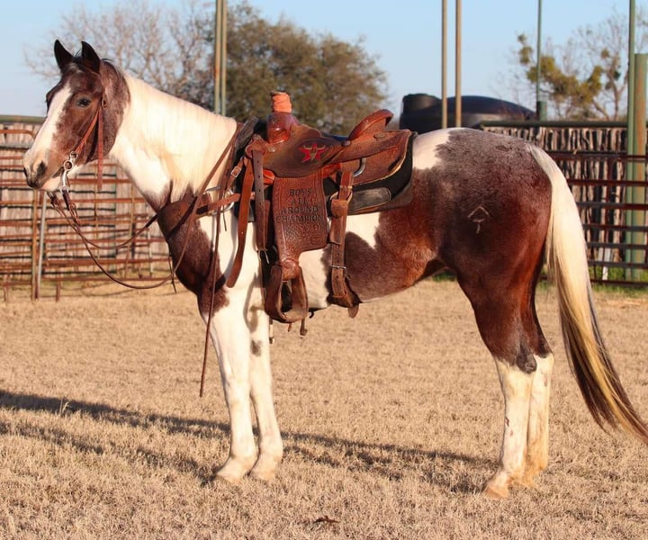 ONLINE AUCTION Place your bids at www.PlatinumEquineAuction.com Starting Bid $3500 Auction ends March 2nd, 2025 Need a new saddle? Check out White Rock Saddles on our website or Facebook! Miss Pie is an 13 year old grade mare. She stands at 15.1hh tall. She has the most precious face with the prettiest, gentle and kind eye. This sweet mare has been used for almost anything you can think of. She is an excellent trail horse! She will gladly climb up or down anything that you point her nose towards. Pie will happily go through any body of water without missing a beat. Pie is not spooky on the trails and can handle any situation that you might encounter, whether that be wildlife, fallen trees, ditches, or treacherous terrain. She is a great leader, but also has no issues falling behind in the back if you want her too. She is calm and sure footed! Pie has been hauled out to town and to rodeos with many distractions and crowds! Pie is a breeze to catch and will come up to you anytime she sees you at the gate. She will load in any trailer without any fuss. Pie is the perfect addition to any barn. He has such a sweet disposition and loves attention and affection. Located in Lipan, TX. We can help arrange hauling anywhere in the US, Hawaii or Canada! Please call or text Makenna Cosby 830-491-8866. ONLINE AUCTION Place your bids at www.PlatinumEquineAuction.com Starting Bid $3500 Auction ends March 2nd, 2025 Need a new saddle? Check out White Rock Saddles on our website or Facebook!