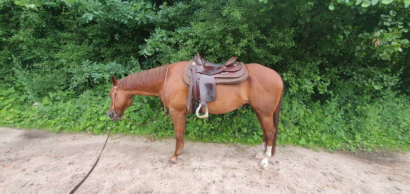 Zum Verkauf steht mein charmanter Quarter Horse Wallach Cody, geboren im Jahr 2011. Er ist gut geritten und auf mehreren Turnieren von mir vorgestellt worden. Er hat mich bis in die Leistungsklasse LK 1 begleitet. Ich habe ihn aus persönlichen Gründen aus dem Turniersport genommen. Cody ist ideal für Western Pleasure und Showmanship sowie Horsemanship. Er hat Spaß an Bodenarbeit und ausreiten, aber auch im Training mag er gefordert werden. Er überzeugt durch seine ruhige, ausgeglichene Art sowie seine vielseitigen Einsatzmöglichkeiten. Er ist freundlich im Umgang, zuverlässig im Gelände und zeigt sich auch unter dem Sattel stets brav und lernwillig. Dank seiner soliden Grundausbildung eignet er sich sowohl für fortgeschrittene Reiter als auch für ambitionierte Freizeitreiter, die Wert auf ein zuverlässiges Pferd legen. Seine tolle liebevolle Art machen ihn zu einem wertvollen Begleiter für den Freizeitbereich sowie für den Westernsport. Bei Interesse oder weiteren Fragen stehe ich gerne für eine Besichtigung und Proberitte zur Verfügung. Verkauft wird er nur aus persönlichen Gründen und mit einem schweren Herzen.