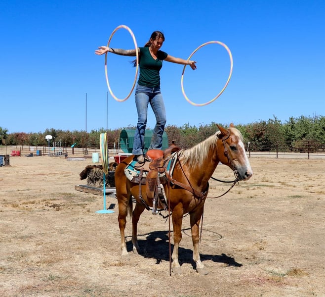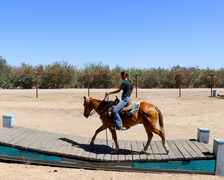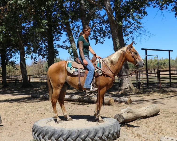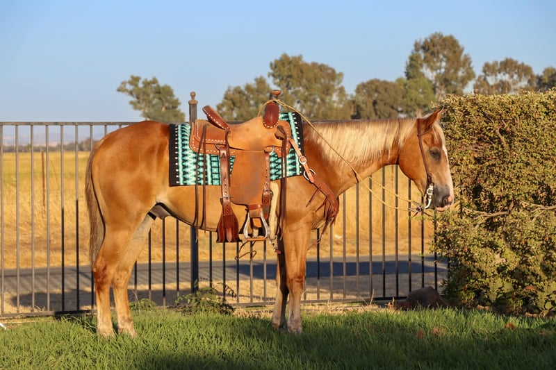 ONLINE AUCTION Place your bids at www.PlatinumEquineAuction.com Starting Bid $3500 Auction ends September 1st, 2024 Need a new saddle? Check out White Rock Saddles on our website or Facebook! The golden boy as we call him AKA GIZMO the 13 year old 14.2 hand sorrel with a beautiful flaxen mane! Gizmo is a saint outside of the arena. His true nature shines when he’s out in the trails. He will absolutely go through anything and through anything. He will go over bridges, water, logs, rocky terrain, steep hills. He will do it all….he’s the type you can just put your reins down and he’ll just walk along and he’ll navigate through the terrain for you. Gizmo has also been rode in town/neighboor hoods he has seen bikes, scooters, trash cans, strollers, motorcycles, cars flying by, horns honking, walking through cross walks! Literally anything. He is good alone or in a group. He is great in the arena. He has a great stop,neck reins, moves off your legs. WE HAVE LITERALLY USED THIS HORSE AS A JUNGLE GYM !!!!! We have thrown anything at this guy and has gone through every obstacle including pool noddles, teeter totter bridge, swaying bridge, mattress’s, hoola hoops, etc . We have crawled all over him from his head to bottom to under him. And he could not even care. Gizmo is always ready to take a nap…you can stand around and talk to your friends for an hour and he’ll stand there and nap while chaos is going on around him. He is a very sweet in your pocket kind of horse. He stands to be saddled, bathed, groomed, farrier. He loads right up in the trailer and doesn’t rush out. He is good in a stall or pasture with others. He is low man on the totem pole. He is UTD on shots, worming, farrier! Please feel free to reach out to KW Ranch and Performance Horses Kamryn 530-852-2032 for any more questions on Gizmo! Located in Pleasant Grove, CA. ONLINE AUCTION Place your bids at www.PlatinumEquineAuction.com Starting Bid $3500 Auction ends September 1st, 2024 Need a new saddle? Check out White Rock Saddles on our website or Facebook!