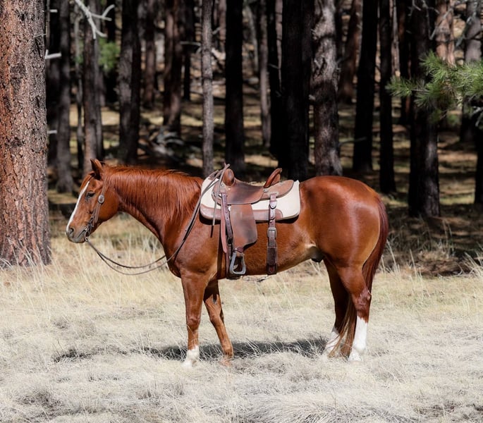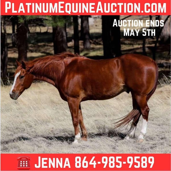 ONLINE AUCTION Place your bids at www.PlatinumEquineAuction.com Starting Bid $3500 Auction ends May 4th, 2025 Need a new saddle? Check out White Rock Saddles on our website or Facebook! Berrie is a 14 year old grade gelding and is standing 14.3hh. This striking sorrel is ready to face whatever you throw his way! We have drug calves to the fire on him, ranched in various terrains, checked miles of fence, worked gates and doctored cattle off him! He’s also an absolute gem in the arena! He will walk, trot, and lope both ways like such a gentleman. He moves off your leg, is also so fun bareback or even brideless! If you want a horse you can trust to take you anywhere and allow you to have fun doing anything, this is your guy!! He’s outstanding in town, around busy streets or loud trucks, with dogs, and will gladly take you through any trails you could dream of! He stands perfectly for baths, saddling, shoeing & grooming, loads perfectly and is just an in your pocket sweetie! He will come with a clean coggins & health!! Can help with transport to anywhere in the US! Located in Cottonwood AZ. Contact Jenna Edwards 864-985-9589 with any questions. ONLINE AUCTION Place your bids at www.PlatinumEquineAuction.com Starting Bid $3500 Auction ends May 4th, 2025 Need a new saddle? Check out White Rock Saddles on our website or Facebook!