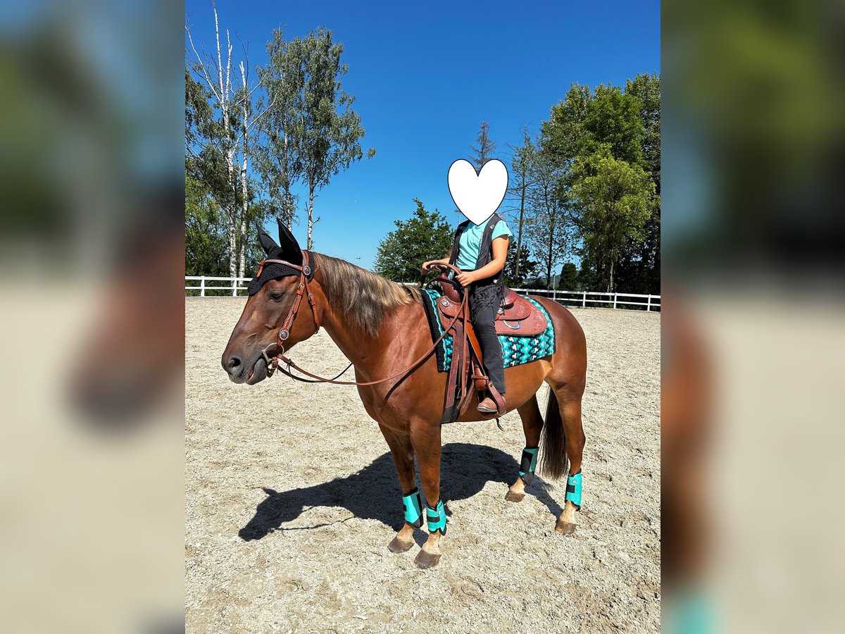This Is Merlins Grin ist kein Pferd für jedermann - sondern für den einen Menschen, der in ihm weit mehr sieht als nur ein schönes Exterieur. Der 2011 geborene, 154 cm große Quarter Horse Wallach in der Farbe Sorrel (Dunkelfuchs) begeistert mit seinem ausdrucksstarken Erscheinungsbild, seiner kompakten, kräftigen Statur und einer Präsenz, die sofort fesselt. Ein echter Blickfang - und gleichzeitig ein Pferd mit Tiefe. Doch seine wahre Stärke liegt in seinem Charakter. Merlin ist ehrlich, feinfühlig und außergewöhnlich menschenbezogen. Er möchte gefallen, hört zu und schenkt seinem Menschen volle Aufmerksamkeit. Hat er einmal Vertrauen gefasst, entsteht eine enge, fast besondere Verbindung, die ihn zu einem unglaublich loyalen Partner macht. Im täglichen Umgang zeigt er sich liebevoll, klar und ohne jegliche Unarten. Er bringt eine solide, vielseitige Ausbildung mit und wurde über die letzten drei Jahre regelmäßig professionell gearbeitet. Unter dem Sattel überzeugt er mit sehr guten, weichen und komfortablen Gängen, die durch Takt, Ausdruck und Qualität bestechen. Ob im Trail mit Brücke, Tor und Stangen, bei fliegenden Wechseln oder im Außengalopp - Merlin arbeitet motiviert mit und zeigt sich stets bemüht, alles richtig zu machen. Auch Bodenarbeit, Doppellonge und Ausritte im Gelände gehören für ihn selbstverständlich dazu. Merlin ist gesund, geimpft, entwurmt sowie schmiede- und verladefromm. Dabei ist es wichtig zu wissen, dass er als ranghohes und sensibles Pferd Konstanz in seinem Umfeld braucht. Häufig wechselnde Pferde in der Herde bedeuten für ihn Stress. Am wohlsten fühlt er sich in einer ruhigen, stabilen Wallachgruppe oder alternativ in einer Einzelhaltung mit durchdachtem Sozialkontakt. Er ist kein Anfängerpferd, sondern sucht einen erfahrenen, ruhigen und souveränen Menschen, der ihm Sicherheit gibt und ihn klar führt. In ungewohnten Situationen kann er kurz den Fokus verlieren, bleibt dabei jedoch jederzeit kontrollierbar und orientiert sich stark an seinem Reiter. Bekommt er die nötige Sicherheit, zeigt er sein ganzes Potenzial: Motivation, Leistungsbereitschaft und eine beeindruckende Partnerschaft. Merlin ist ein Pferd für jemanden, der nicht nur reiten, sondern fühlen möchte. Für jemanden, der bereit ist, ihm die nötige Sicherheit zu geben und dafür einen außergewöhnlichen Partner fürs Leben gewinnt. Merlin wird ausschließlich abgegeben, weil die Haltung, die er benötigt nicht geboten werden kann.