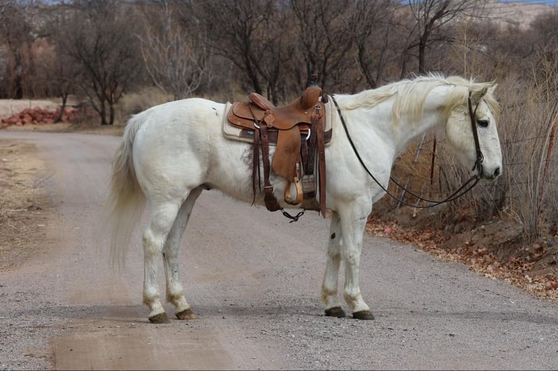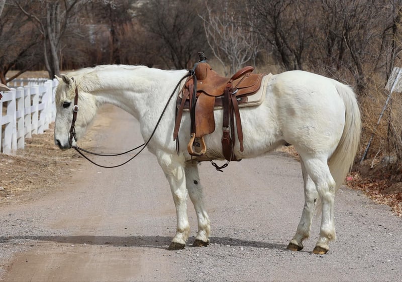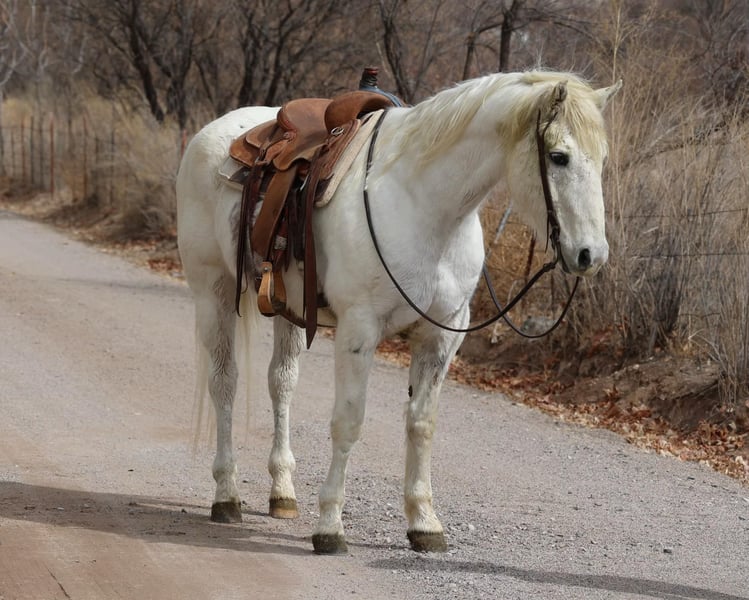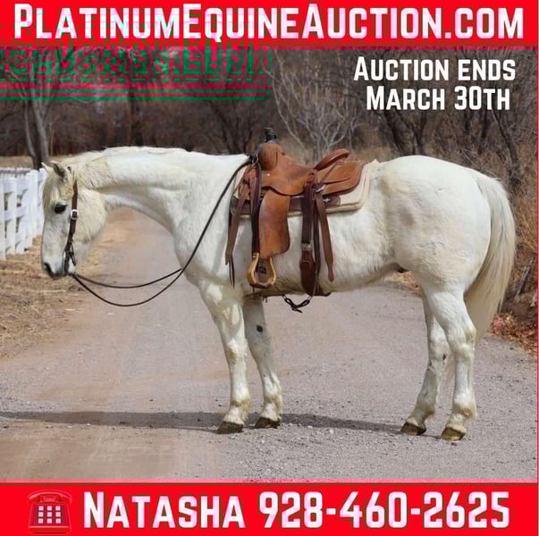ONLINE AUCTION Place your bids at www.PlatinumEquineAuction.com Starting Bid $3500 Auction ends March 30th, 2025 Need a new saddle? Check out White Rock Saddles on our website or Facebook! Frost is a 14 year old grade gelding standing 15.1hh. This gentle gelding is an absolute veteran around the ranch and has done absolutely every job a horse can do on a working ranch. Drug calves, loaded trucks, doctored yearlings, packed salt and fencing supplies, worked gates, rode miles and miles of fence, you name it and Frosty has done it. This well versed gelding has had a job his whole life and knows a long days work, making him very well rounded, exposed, and absolutely gentle and safe. Whether you’re going to give Frost a job, meander on down the trail, or play around the arena, Frosty would be a great fit!! You can let Frost sit for months, saddle up and get right on and he will be the exact same gentle gelding he is today, will not get fresh. Frost is not only great to ride outside, he’s a blast in the arena as well! Frost will walk trot and lope both ways with ease, as well as neck rein and has a great stop. If you’re looking for your first horse, a reliable trail mount, or an experienced ranch horse then Frosty is your guy!!! Frost is good to catch and good to groom, saddle, bridle, bath, shoe, and load! Will come with a clean coggins and health! Transport can easily be arranged anywhere in the US!!! Located in Camp Verde, AZ Contact D/C Equine Services Dallas 804-822-2233 or Natasha 928-460-2625 ONLINE AUCTION Place your bids at www.PlatinumEquineAuction.com Starting Bid $3500 Auction ends March 30th, 2025 Need a new saddle? Check out White Rock Saddles on our website or Facebook!