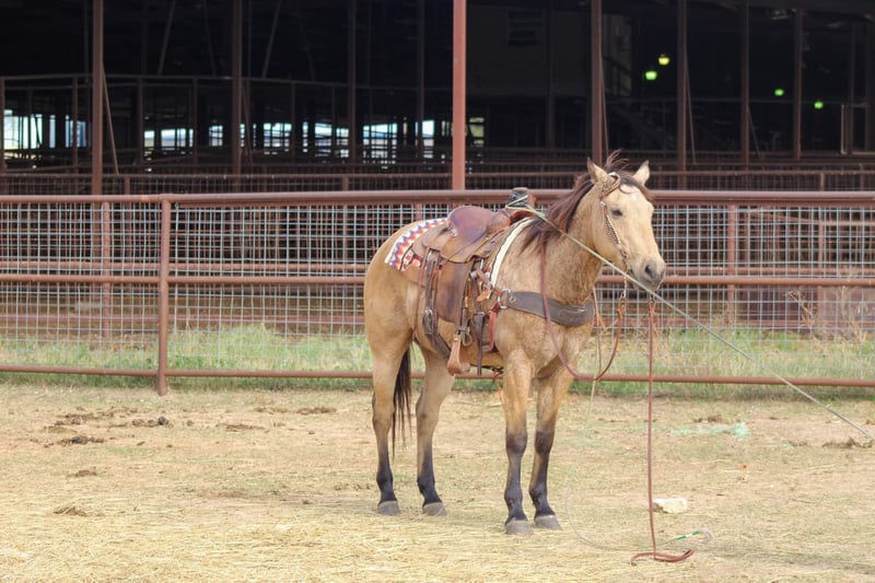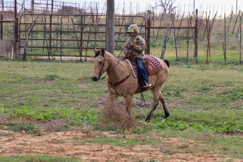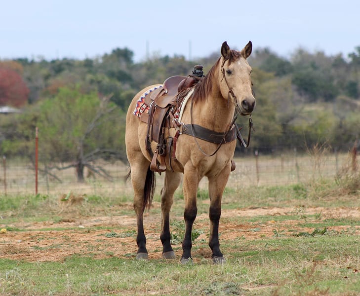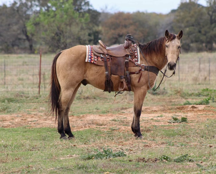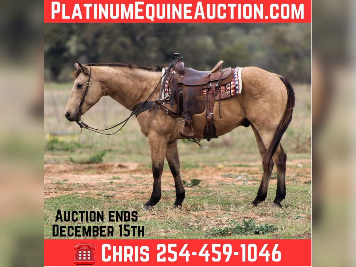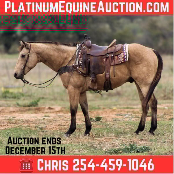 ONLINE AUCTION Place your bids at www.PlatinumEquineAuction.com Starting Bid $3500 Auction ends December 15th, 2024 Need a new saddle? Check out White Rock Saddles on our website or Facebook! Gunsmoke is a 14 year old buckskin gelding standing 15 hds tall . Gunsmoke is Americas favorite color and SAFE for the whole family . He has spent many miles checking fences on the ranch. Gunsmoke has been a ranch horse all of his life he has sorted pairs, roped and doctored sick cattle outside . He is a joy to ride out on the ranch from checking your cattle to fences. We use him weekly penning back cattle at our cow sale. Gunsmoke is absolutely GENTLE for the whole family . He has been rode by our kids daily and is use to just about everything you can imagine. We rode him in our 4th of July parade this year and he was fantastic! Gunsmoke is happy to do anything you ask. He will happily do a days work out on the ranch or just an easy day riding down the trails . He is a point and go type of guy he goes wherever you point him. He’s absolutely user friendly to ride and any level of rider will get along with him. Gunsmoke is one the WHOLE family can enjoy from the adults to the kids. Ones like him don’t come around often . Gunsmoke would sure look great under your Christmas Tree! Contact us with questions you may have about our fabulous guy we will be happy to answer any of them or if you’d like to facetime and meet Gunsmoke. Shipping is available worldwide. Located in Stephenville,TX. Contact Stephenville Cattle Co. Chris 254-459-1046. ONLINE AUCTION Place your bids at www.PlatinumEquineAuction.com Starting Bid $3500 Auction ends December 15th, 2024 Need a new saddle? Check out White Rock Saddles on our website or Facebook!