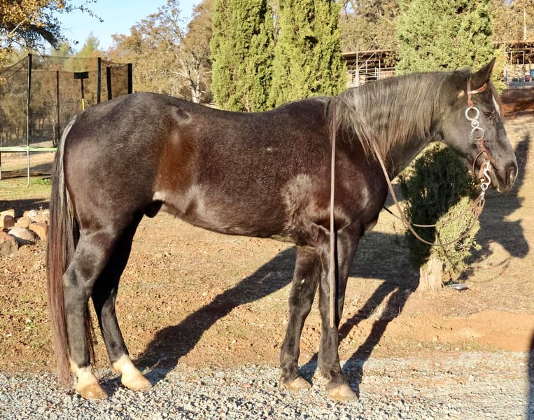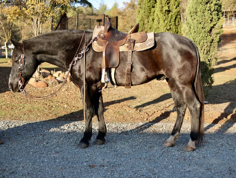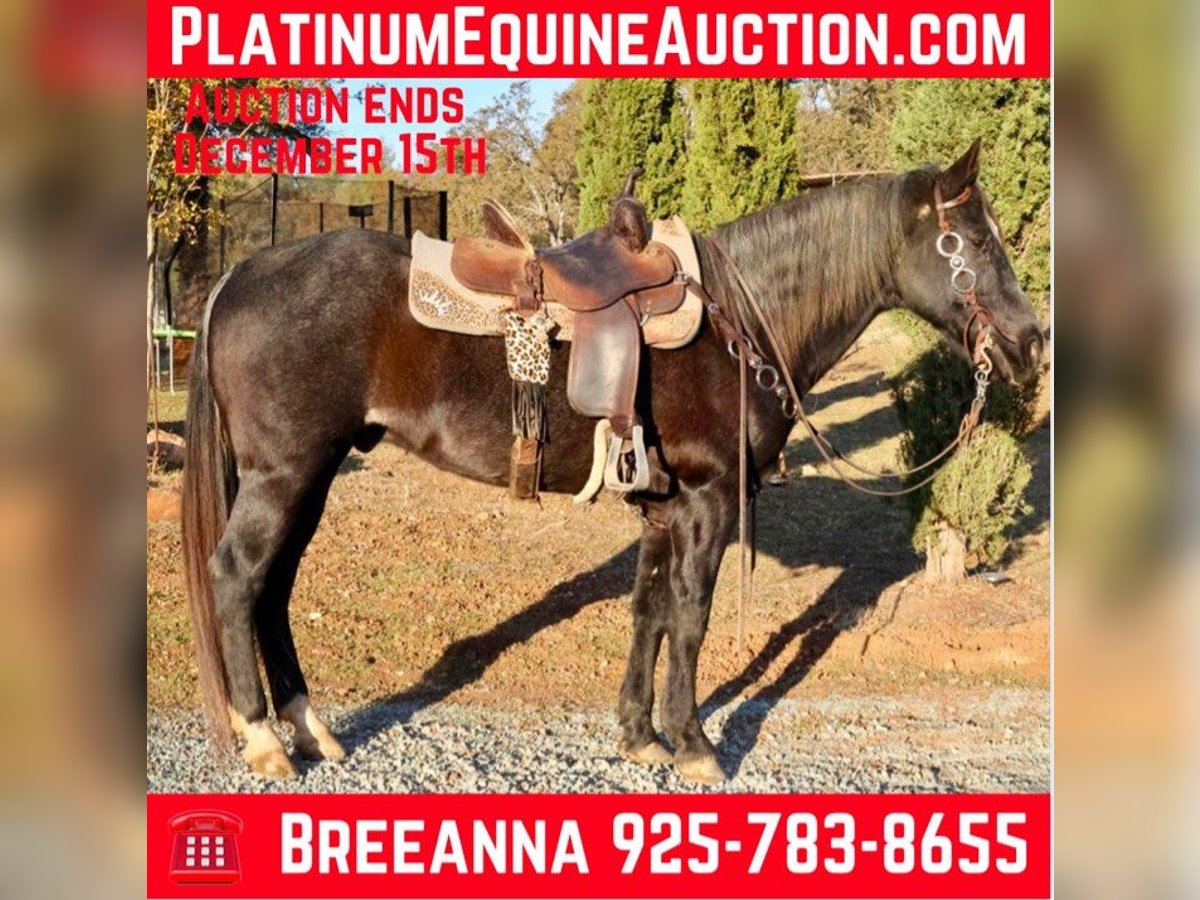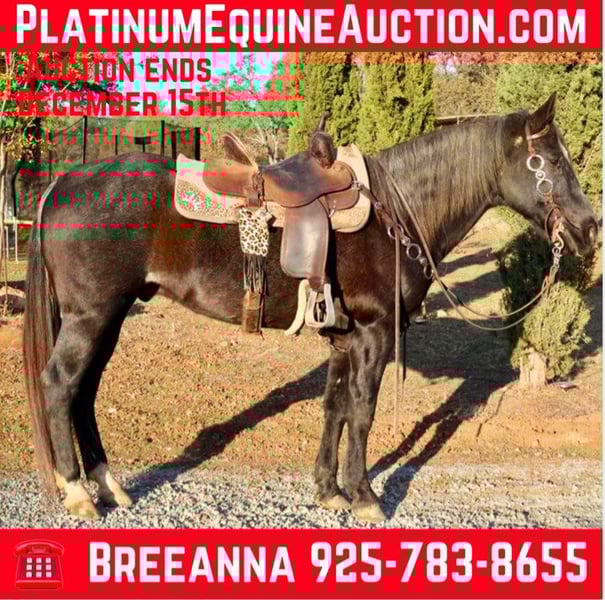 ONLINE AUCTION Place your bids at www.PlatinumEquineAuction.com Starting Bid $3500 Auction ends December 15th, 2024 Need a new saddle? Check out White Rock Saddles on our website or Facebook! Do you want an absolutely stunning gelding? Fancy broke and sure footed for some rough terrain? Captain is your man. He’s a stunning blue roan gelding, with an amazing mane and tail. He’s eye catching and kind! 14yo grade gelding. Standing about 15.1 and solid built. He’s got a fresh set of 4 shoes on him. Great with his feet, stands tied, easy to saddle, bridle, bathe, blanket, load and haul. Extremely quiet in the trailer. Load him up and get a bite to eat before going out in the rough terrain to gather some cattle. He was previously used on the ranch, he loves and seeks a job. He is not a slow poke around horse, however he is absolutely fun to ride and has slow smooth gaits. No mean bone in his body. No buck bolt rear. Cinch him up and get on. He’s fancy in the arena, collects up very pretty, nice stop, turn around, picks up his leads immediately. He’d make a jam up gymkhana horse he’s broke enough to just take out and do the patterns. I’ve taken him down extremely steep slippery rocky hills. He does not bat an eye. Not spooky. Really smooth gaits. Easy keeper no maintenance, no know injuries. No known health issues. I really enjoy riding this horse, I like my work horses. While he is forward anyone who confident enough to ask him what they want him to do can handle him. The video shows exactly what he is. He can be a bit barn sour if he’s next to a bunch of horses, it’s not horrible he’s not going to run you back, he’s not going to pull you out of the arena. If you confidently ask him to do what you want he will no hesitation do what’s asked. He’s been rode down the road by cars, bikes, flags, tractors, etc. He’ll work for you all day long while looking pretty and fancy doing it. Located in valley springs ca. Cross B Horses Breeanna 925-783-8655. ONLINE AUCTION Place your bids at www.PlatinumEquineAuction.com Starting Bid $3500 Auction ends December 15th, 2024 Need a new saddle? Check out White Rock Saddles on our website or Facebook!