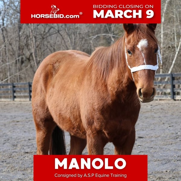 ℳ𝒶𝓇𝒸𝒽 ♦️𝐑𝐈𝐃𝐄𝐑'𝐒 𝐂𝐇𝐎𝐈𝐂𝐄♦️ Happening now thru MONDAY | MARCH 9th - Available EXCLUSIVELY on HorseBid's website! For more details and to register visit: www.Horsebid.com CONSIGNOR CONTACT: A.S.P Equine Training 423-930-6022 LOCATION: Jonesbrough, TN BREED: Quarter horse REGISTERED: Yes REGISTERED NAME: Ellie Showdown COLOR: Sorrel HEIGHT: 14.2 AGE: 2 GENDER: Gelding This coming 3-year-old (AQHA) gelding is a standout young prospect with all the right pieces to excel in the rodeo arena. Ranch and cow bred, he is extremely athletic, quick-footed, and naturally balanced, with a very pretty, fluid way of moving. He carries himself with confidence and presence, and his build and ability give him the tools to go on as a barrel, rope, or all-around rodeo prospect. He has the kind of natural talent that makes you excited about his future. What truly sets him apart is his mind. He is exceptionally good-minded, calm, and confident beyond his years. He handles new places and new situations with ease, making him an excellent candidate for hauling and continued exposure. He is not the spooky or reactive type — he processes pressure, thinks through situations, and stays level-headed. On the ground, he is as solid as they come. He is respectful, mannerly, and very easy to handle. He self-loads into the trailer and hauls quietly with other horses. He stands tied for hours without fussing, stands patiently for the farrier, and stands quietly to be saddled. He is polite in every aspect of daily handling and goes wherever you direct his feet with willingness and purpose. Beyond his athletic ability, his personality truly makes him special. He is the kind of gelding that meets you at the gate and enjoys attention. He is people-oriented and genuinely wants to be your partner. Confident without being dominant and responsive without being overly sensitive, he has the steady, reliable nature that makes him enjoyable day in and day out. Under saddle, he shows natural talent and trainability. He lopes correct, balanced circles with cadence and softness and has a good, honest stop. He is responsive to cues and improves with every ride, picking up on new concepts quickly. His combination of athleticism and strong mind gives him the foundation to thrive in a performance program — especially in a rodeo setting where confidence and grit matter. He is the type of young gelding that offers both competitive potential and long-term partnership. His solid foundation and strong start set him up for lasting success in whatever direction you choose.